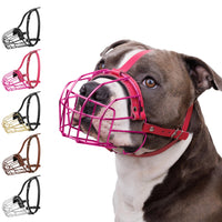 BRONZEDOG Pitbull Dog Muzzle Metal Mask Amstaff Wire Basket Pit Bull Adjustable Leather Straps for Large Dogs (Pink)