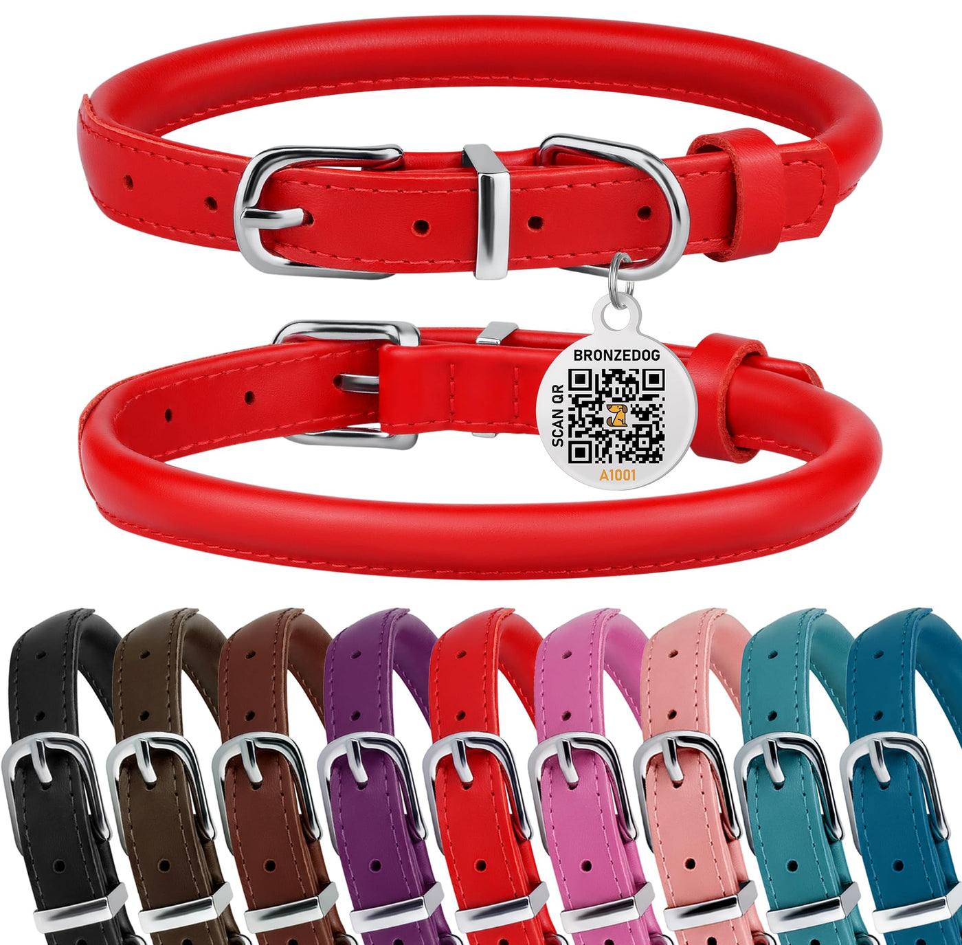 Bronzedog Rolled Leather Dog Collar For Small Medium Large Dogs With Qr Id Tag (S: 12-14 Inch, Scarlet Red)
