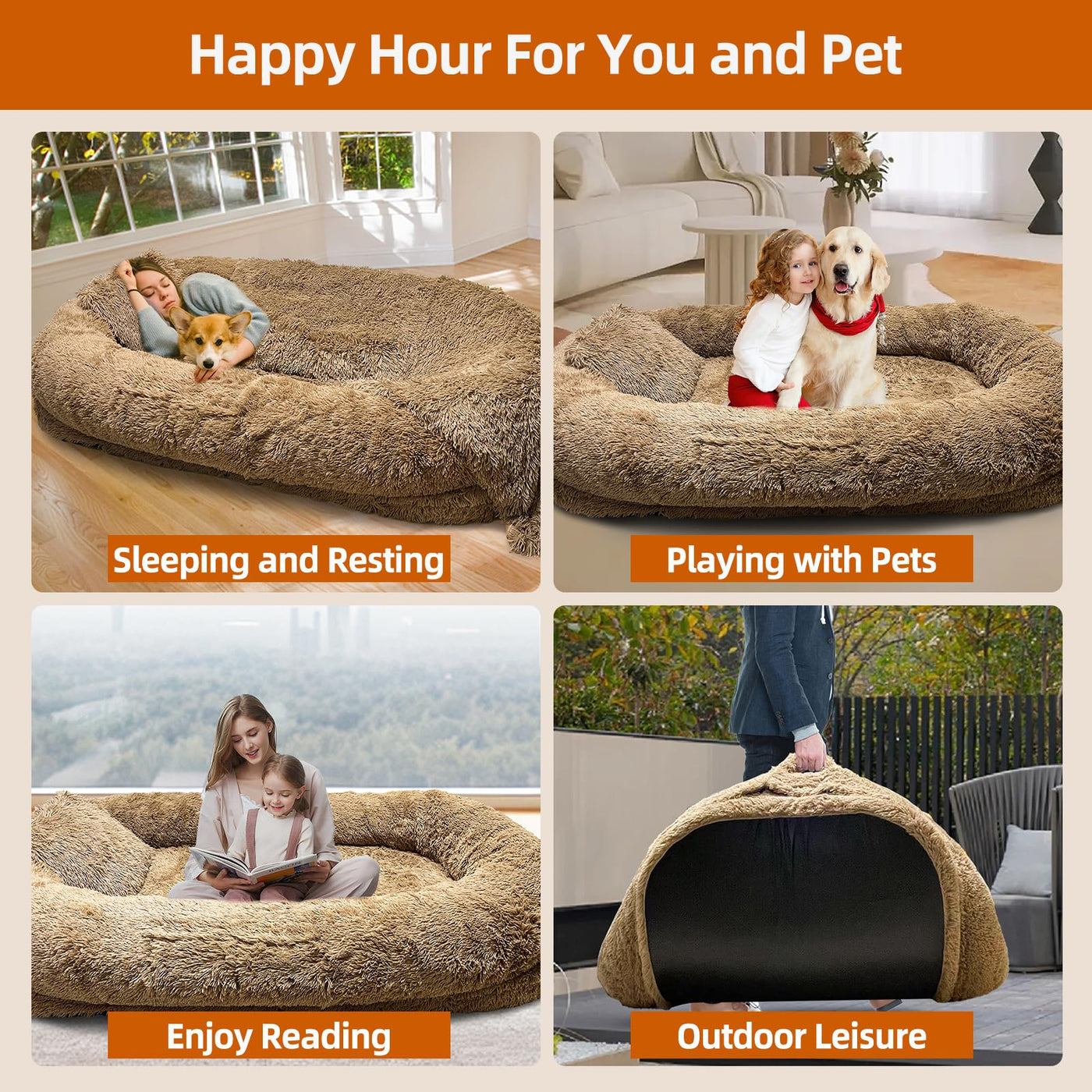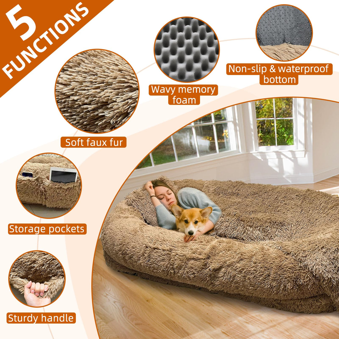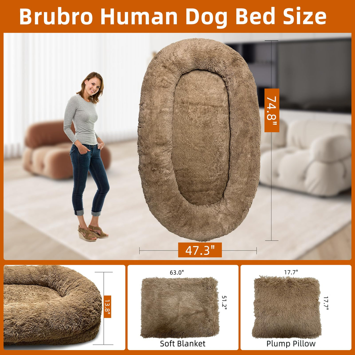 Brubro Large Human Dog Bed For Adult,74.8X47.3X13.8 Human Sized Dog Bed For People And Pets,Removable And Washable Faux Fur Giant Dog Bed For Humans With Blanket & Pillow,Khaki Human Size Dog Bed Foldable Adult Size Dog Bed For Humans Orthopedic Dog Beds For Large Dogs Human Adults Adjustable Large Human Dog Bed For People Adults Human Pet Bed Memory Foam Plush Kids Blanket Attached Sides Luxury Oversized. Giant Pet Bed Adult Size Orthopedic Dog Beds For Large Dogs Bean Bag Bed Adjustable Memory Foam Pluffle Cloud Plush Double Lambchop Bedside Dog Bed For Kids Xxl Dog Bunk Bed Attached Extra Large Oversized Dog Bed Furniture Big Dog Sofa