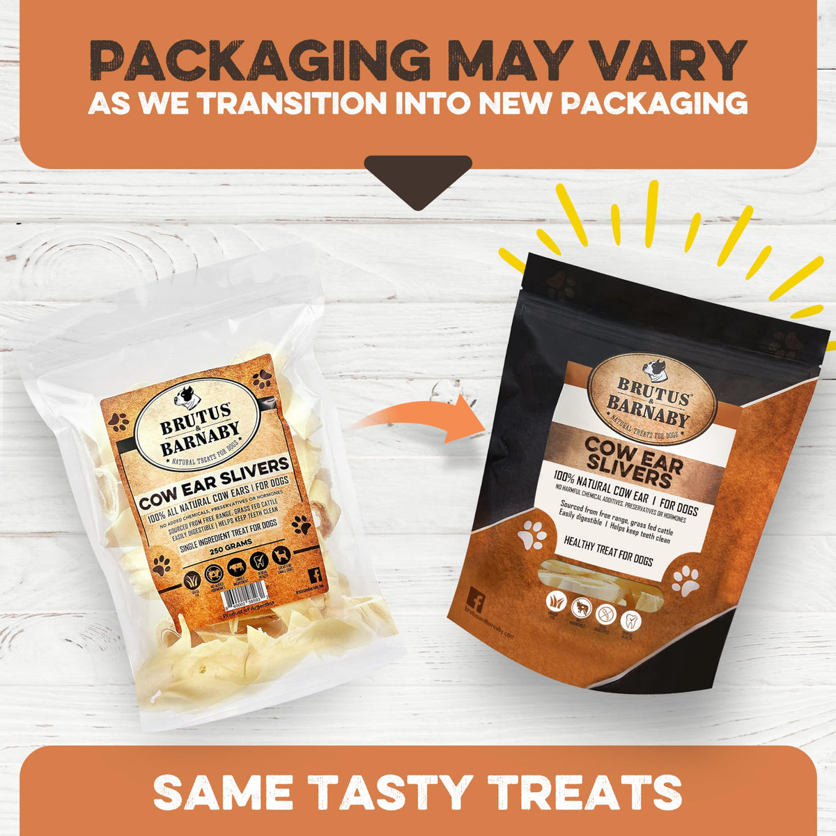 BRUTUS & BARNABY Cow Ears for Dogs; Ear Slivers are Great for Puppy Teething, Single Ingredient Beef Ear Slivers for Small to Me