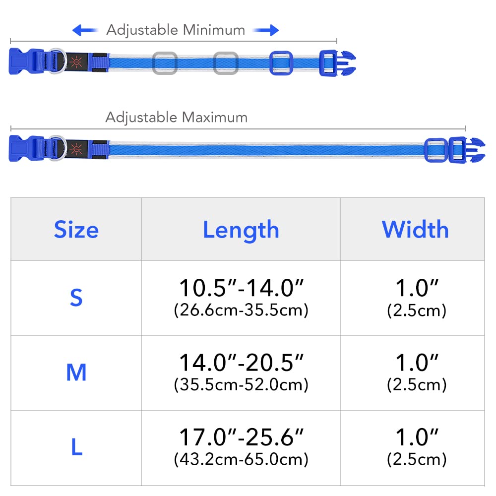 Bseen Led Dog Collar Light Your Dogs Colorful Life, Keep Them Be Seen& Be Safe In The Dark! Features Of Bseen Pet Collar: Ultra Bright At Night, High Visiblity: ?Glow With Tpu Light-Guiding Tube, Makes You Can Find Your Puppies In The Dark, And Avoid Some Potential Traffic Dangers. Comfortable& Lightweight To Wear: ?This Bseen Led Dog Collar Is Made Of High Quality Mesh Materials, Very Soft & Light For Dogs To Wear On The Neck For Long Time. Also Comes With Metal Buckles To Connect With Dog Leash. Micro Usb Rechargeable, No Hassle To Replace Batteries: ? It Comes With Micro Usb Charge Cord, And If You Can Also Use The Standard Micro Usb Cable From Other Device To Get It Charged. Usually Charge 2 Hours, Can Last For 2-3 Hours For Steady Glow, And 4-6 Hours For Quick Blinking; 8-12 Hours For Slow Flashing. 3 Flashing Modes For Choosing: ?This Light Up Dog Collar Have 3 Flashing Modes, You Can Change The Modes Just By Clicking The Switch Buttons: Solid Glowing- Quick Flashing- Slow Blinking- Off. Package Includes: ?1* Led Lighted Dog Collar ?1* Micro Usb Cord Warranty: ?Bseen Is Committed To 100% Satisfaction And 60 Days Guarantee For Our Customers. If Any Problems For Our Items, Please Feel Free To Contact With Us! Our Friendly Service - 24 Hours Email Customer Service Response. Warning: Choking Hazard Small Parts. Not For Children Under 3 Years. Charing With 5V Usb Adapter Only. Do Not Use Fast Charger Adapter, It May Cause Serious Damages.