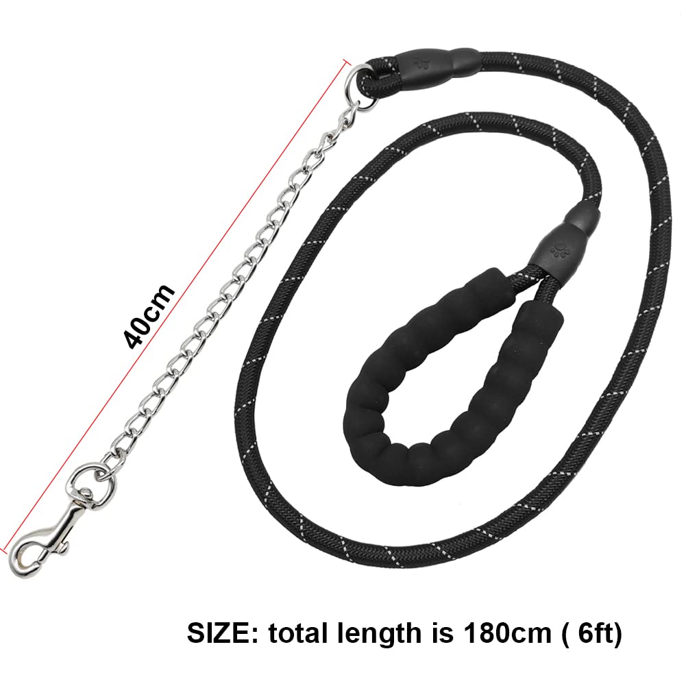 BTINESFUL Chew Proof Dog Leash| 6FT Heavy Duty Rope Leash| Anti-Chewing Chain with Padded Handle for Medium Large Dogs Outdoor Training Walking