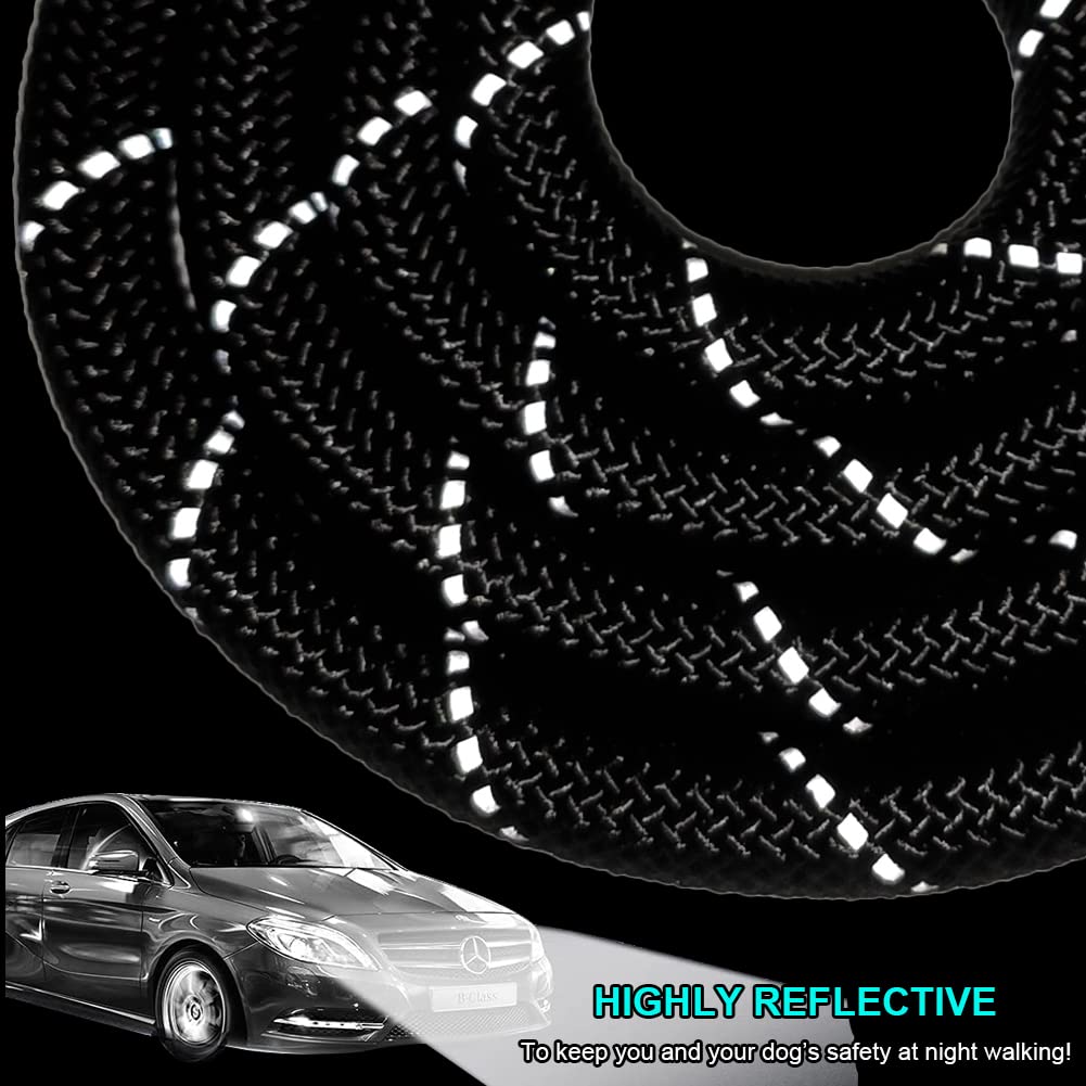 Btinesful 6Ft Chewproof Dog Leash, Strong Nylon Rope With Anti-Chewing Chain And Padded Handle For Medium Large Dogs Outdoor Training Walking Hiking Black