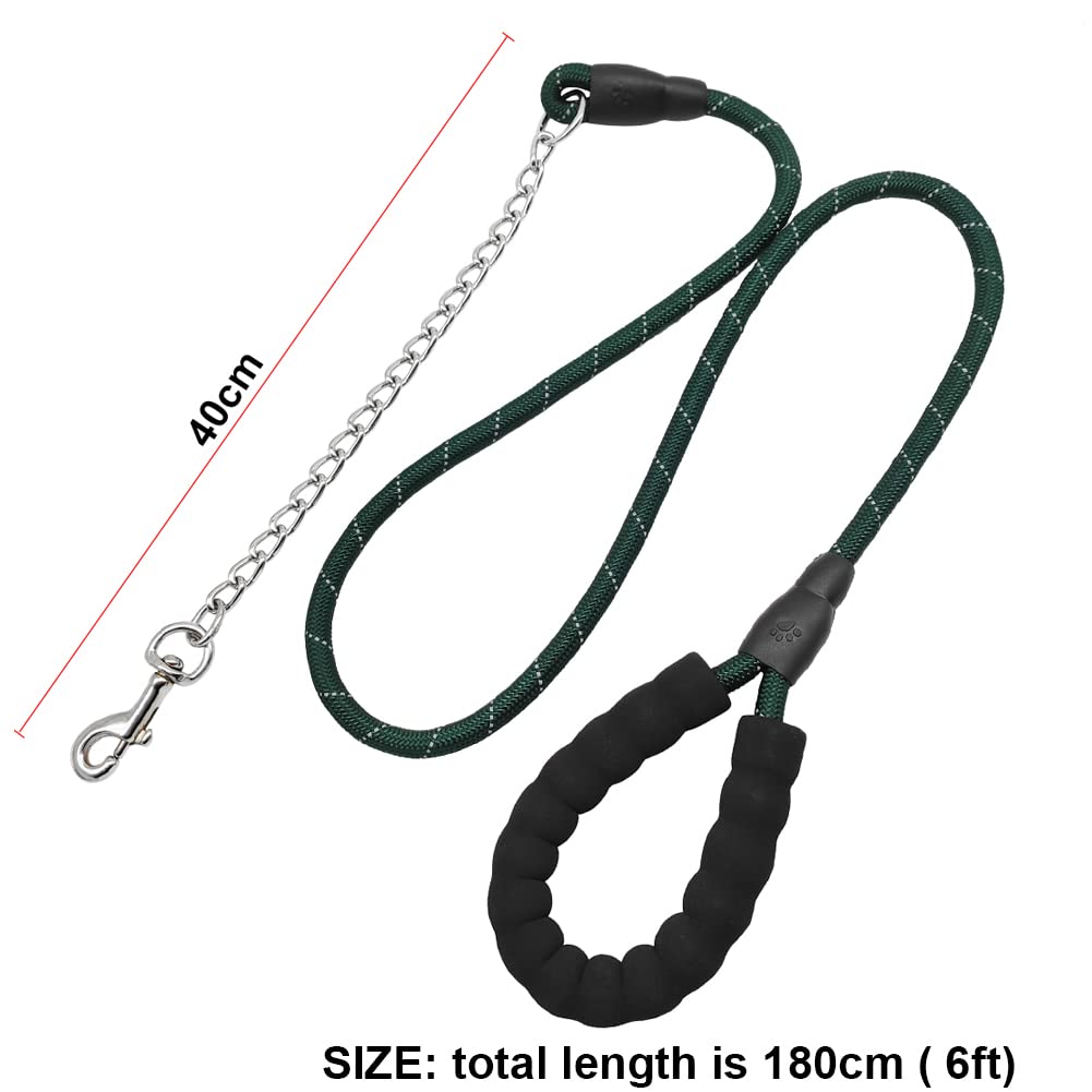 Btinesful 6Ft Chewproof Dog Leash, Strong Nylon Rope With Anti-Chewing Chain And Padded Handle For Medium Large Dogs Outdoor Training Walking Hiking Dark Green