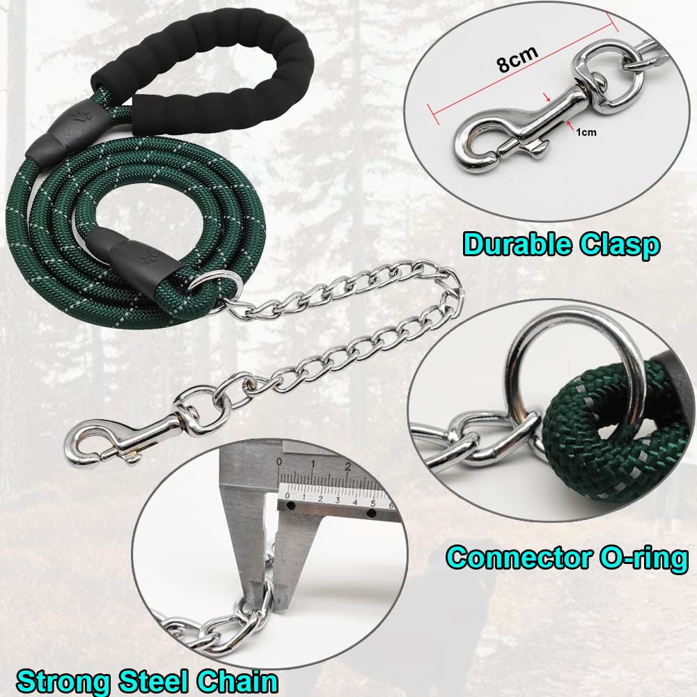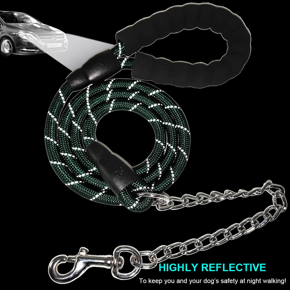 BTINESFUL Chew Proof Dog Leash| 6FT Heavy Duty Rope Leash| Anti-Chewing Chain with Padded Handle for Medium Large Dogs Outdoor Training Walking