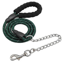 If you have a medium large dog or big puppy that always chew the dog leash while outdoor walking, the chain of this rope leash makes the difference. It is perfectly balance to protect the rope leash and also let your dogs chewing the chain while walking. Due to they only chew the chain near their neck.
