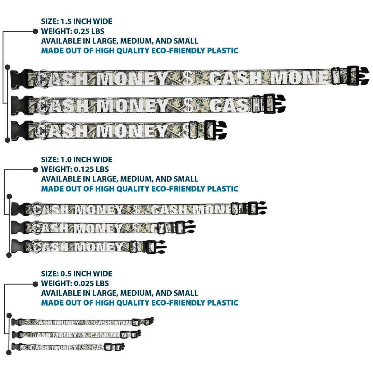 Buckle-Down 11-17'' Cash Money $ Dollars/White Plastic Clip Collar, Medium