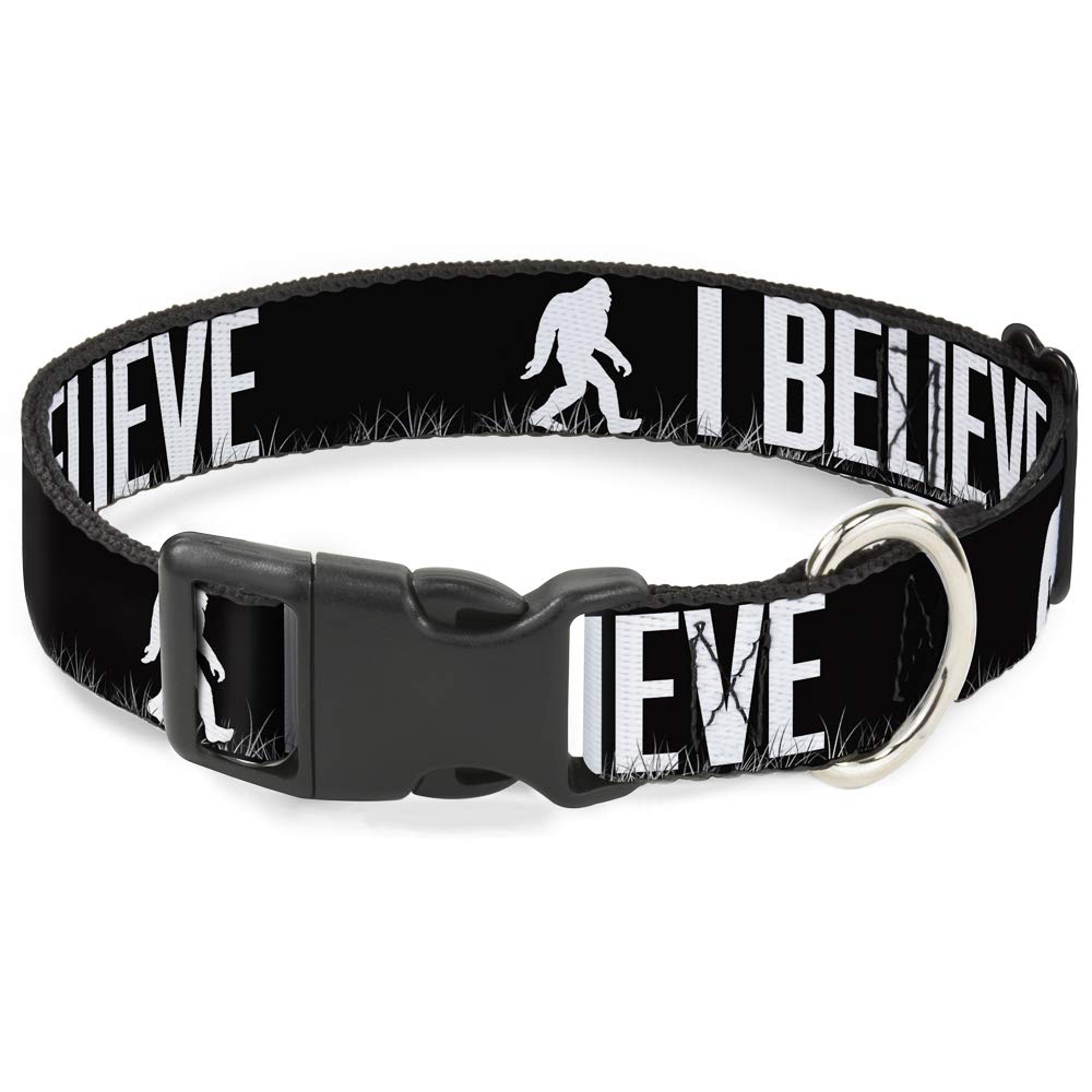 Buckle-Down 6-9'' Bigfoot Silhouette I Believe Black/Gray/White Plastic Clip Collar, Narrow Small