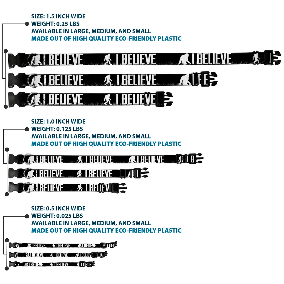 Buckle-Down 9-15 Bigfoot Silhouette I Believe Black/Gray/White Plastic Clip Collar, Small