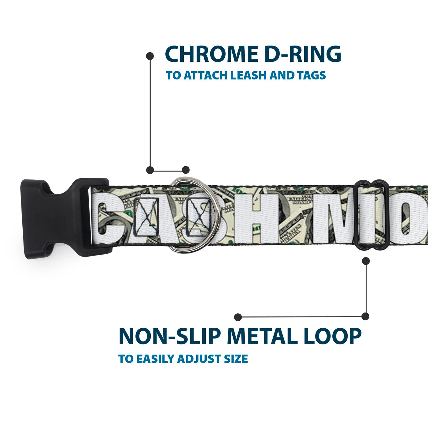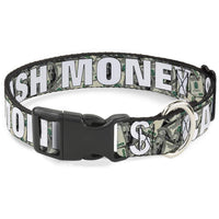 Buckle-Down 9-15'' Cash Money $ Dollars/White Plastic Clip Collar, Small