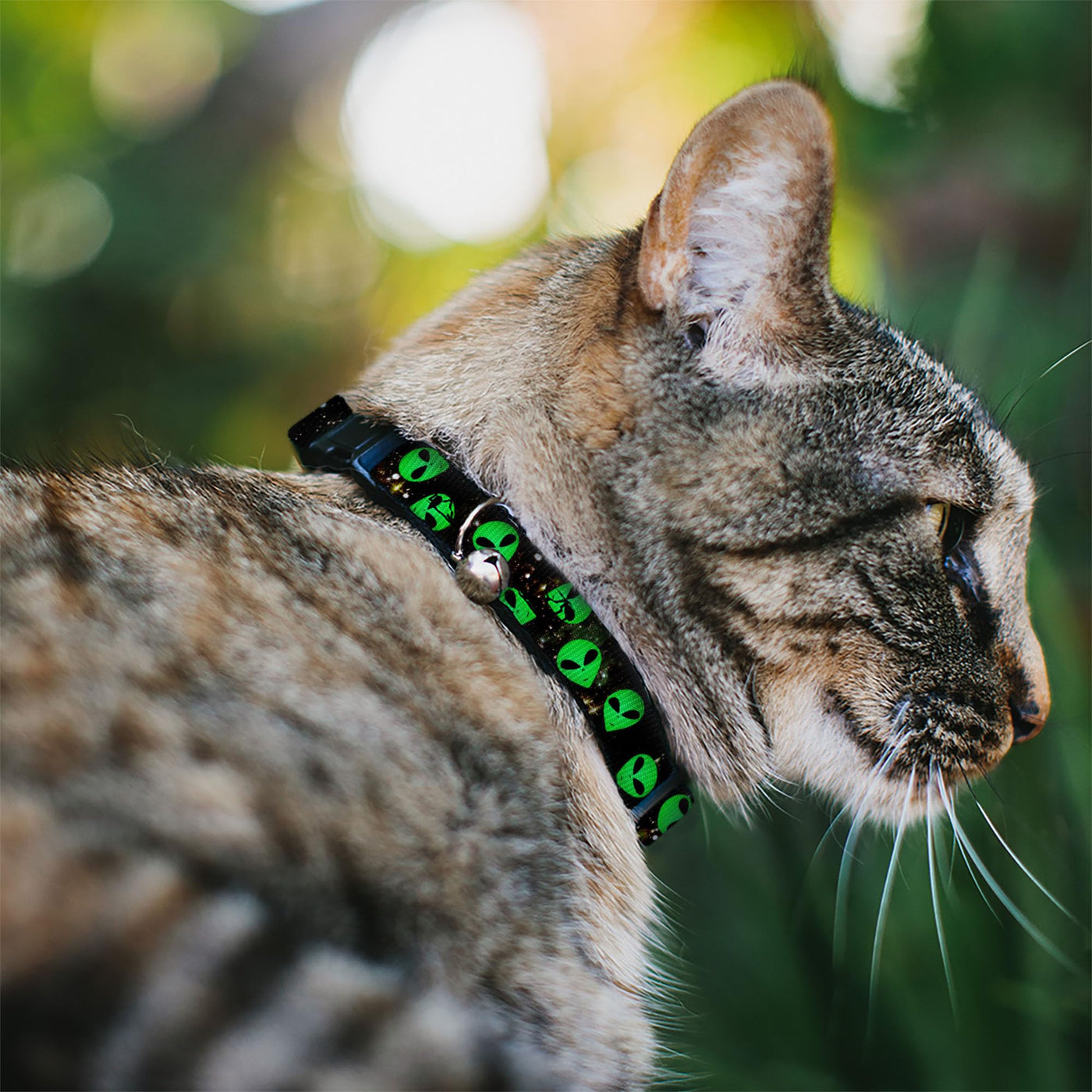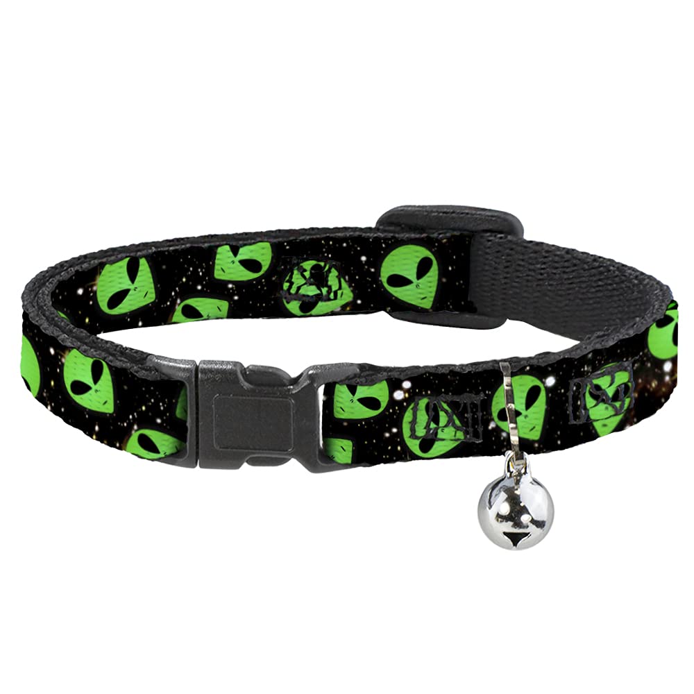 Buckle-Down Aliens Head Scattered, Breakaway Cat Collar With Bell, Plastic Clip, Easy Adjustable, 8.5 To 12''-0.5'' Wide
