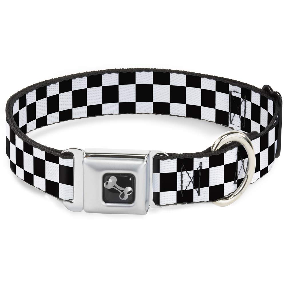 Buckle-Down Checker Black/White Dog Collar Bone, Small/9-15'