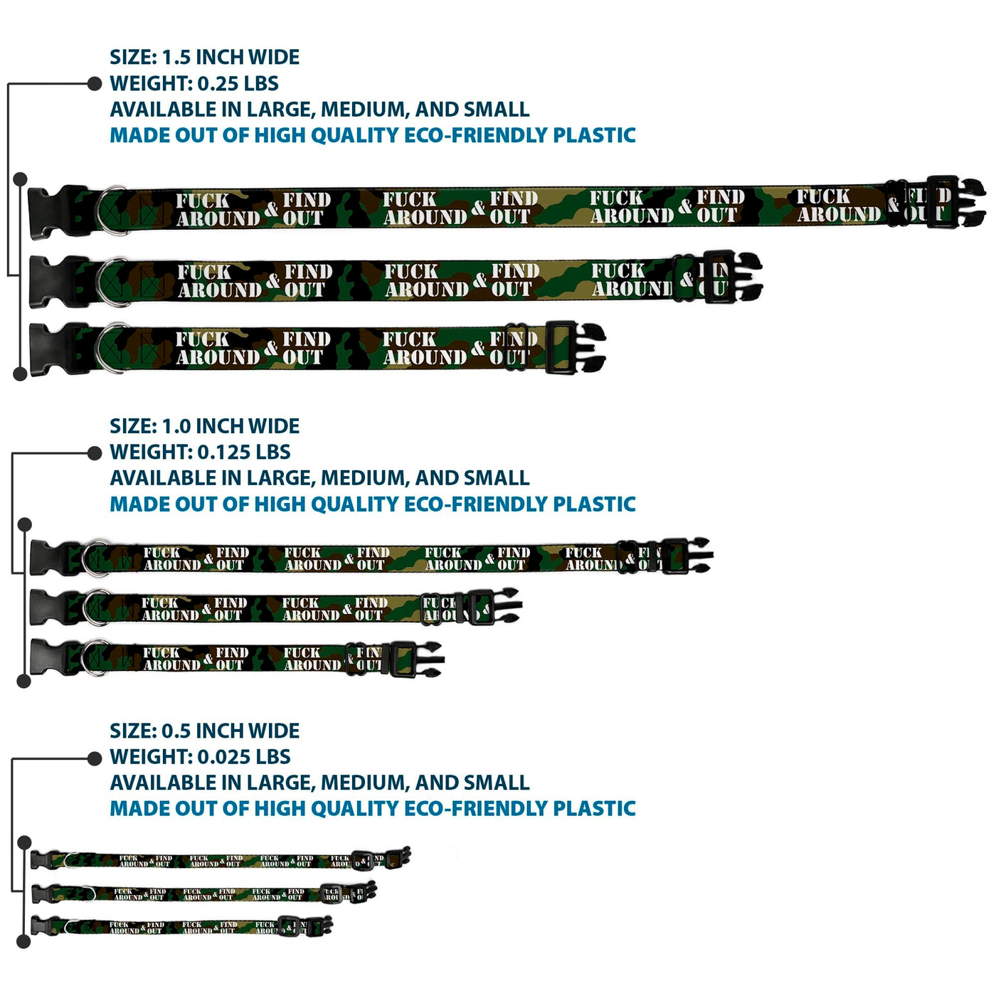 Buckle-Down Dog Collar Plastic Clip Fafo Fuck Around And Find Out Stencil Camo White 16 To 23 Inches 1.5 Inch Wide