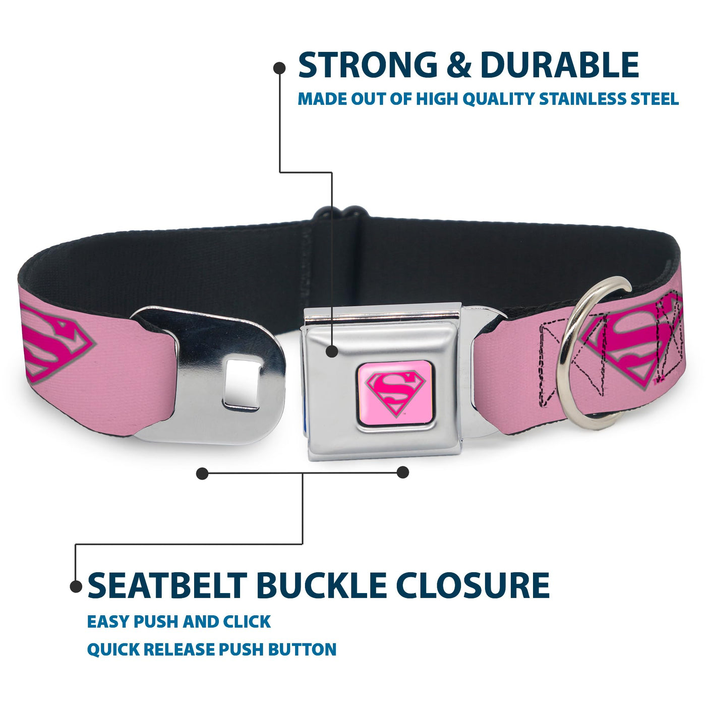 Buckle-Down Dog Collar Seatbelt Buckle Superman Shield Pink 9 To 15 Inches 1.0 Inch Wide, Multi Color (Dc-Wsm006-S)