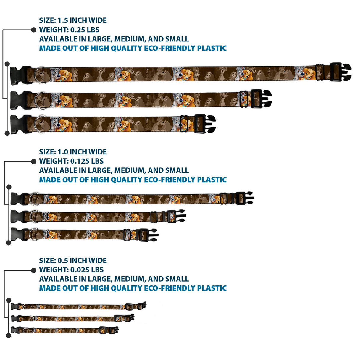 Buckle-Down Pc-Wdy372-Wl Plastic Clip Collar-Lady And Tramp 2-Poses/Spaghetti Kiss Scene Browns, 1.5'' W-18-32'' Neck-Large