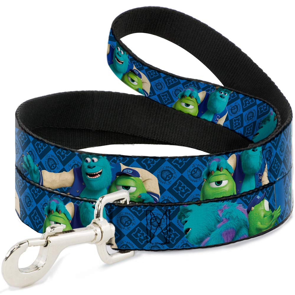Buckle-Down Pet Leash - Monsters University Sulley & Mike Poses/Checkers Blue - 6 Feet Long - 1.5'' Wide