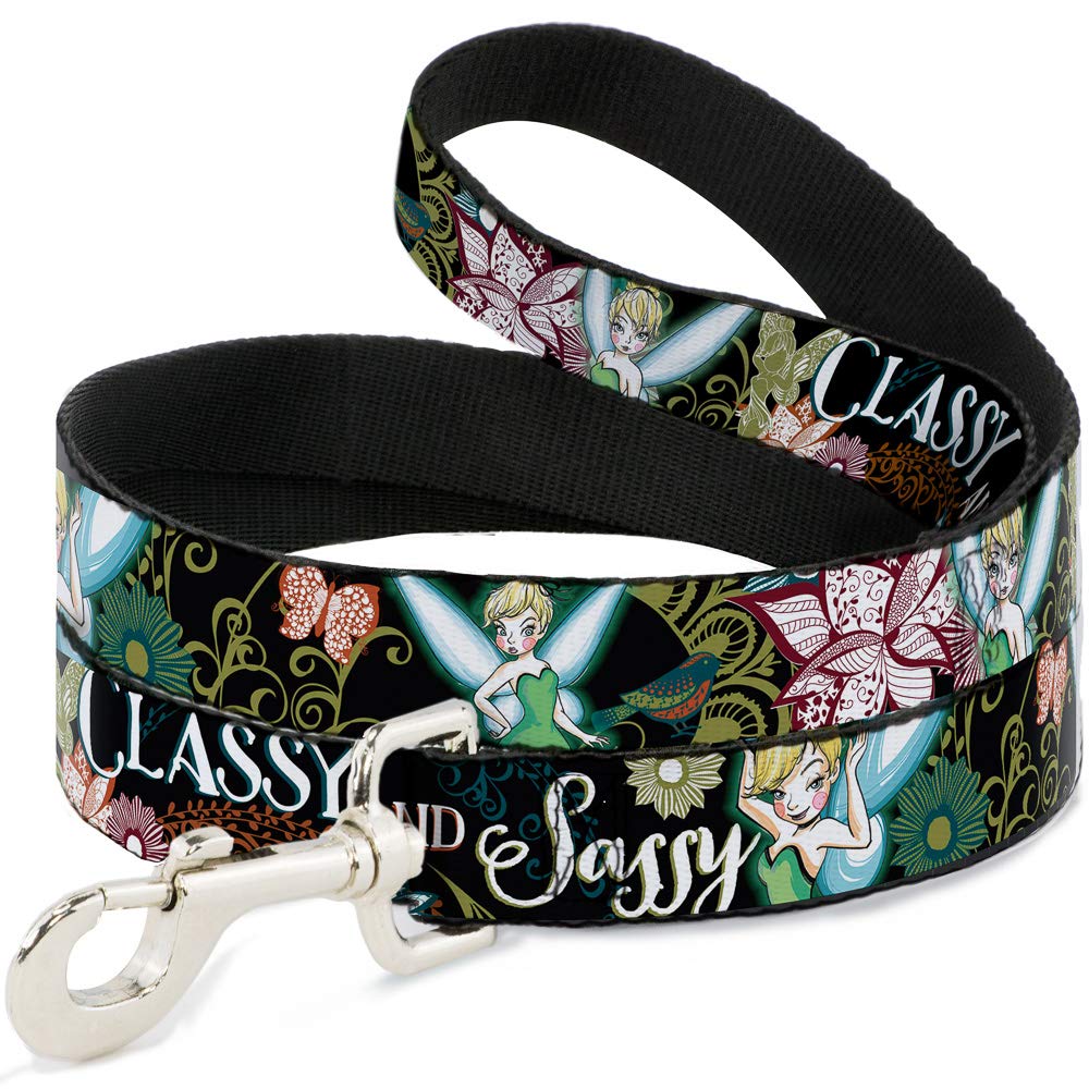 Buckle-Down Pet Leash - Tinker Bell Floral Collage Classy And Sassy - 6 Feet Long - 1.5'' Wide