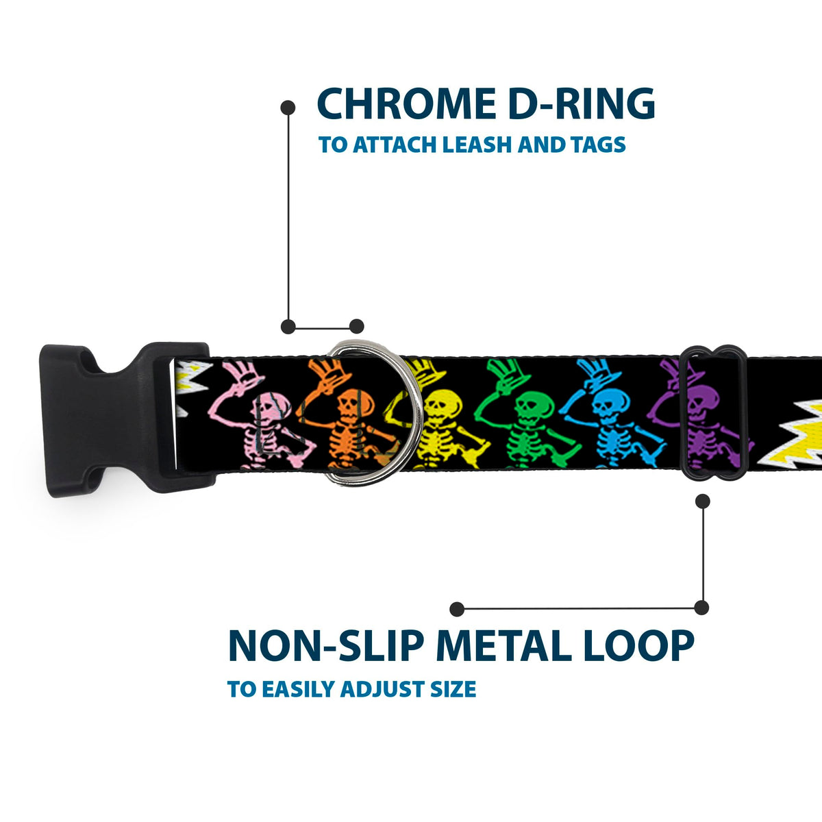 Vibrant And Bold, This Beautiful, Polyester Dog Collar Is Made To Show Off Your Dog'S Unique Style Through All The Seasons. With An Overengineered Plastic Buckle And Strong D-Ring, This Durable Collar Can Hold Up To Whatever Your Dog Can Dish Out. This Product Is Officially Licensed By Grateful Dead.