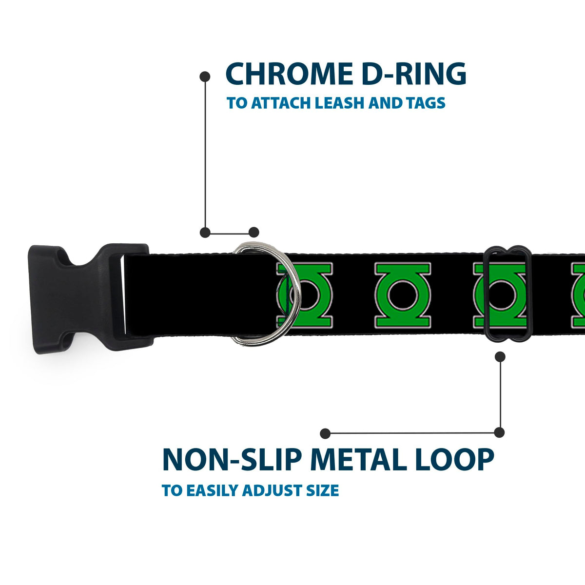 Buckle-Down Plastic Clip Collar - Green Lantern Logo Black/Green - 1.5'' Wide - Fits 13-18'' Neck - Small