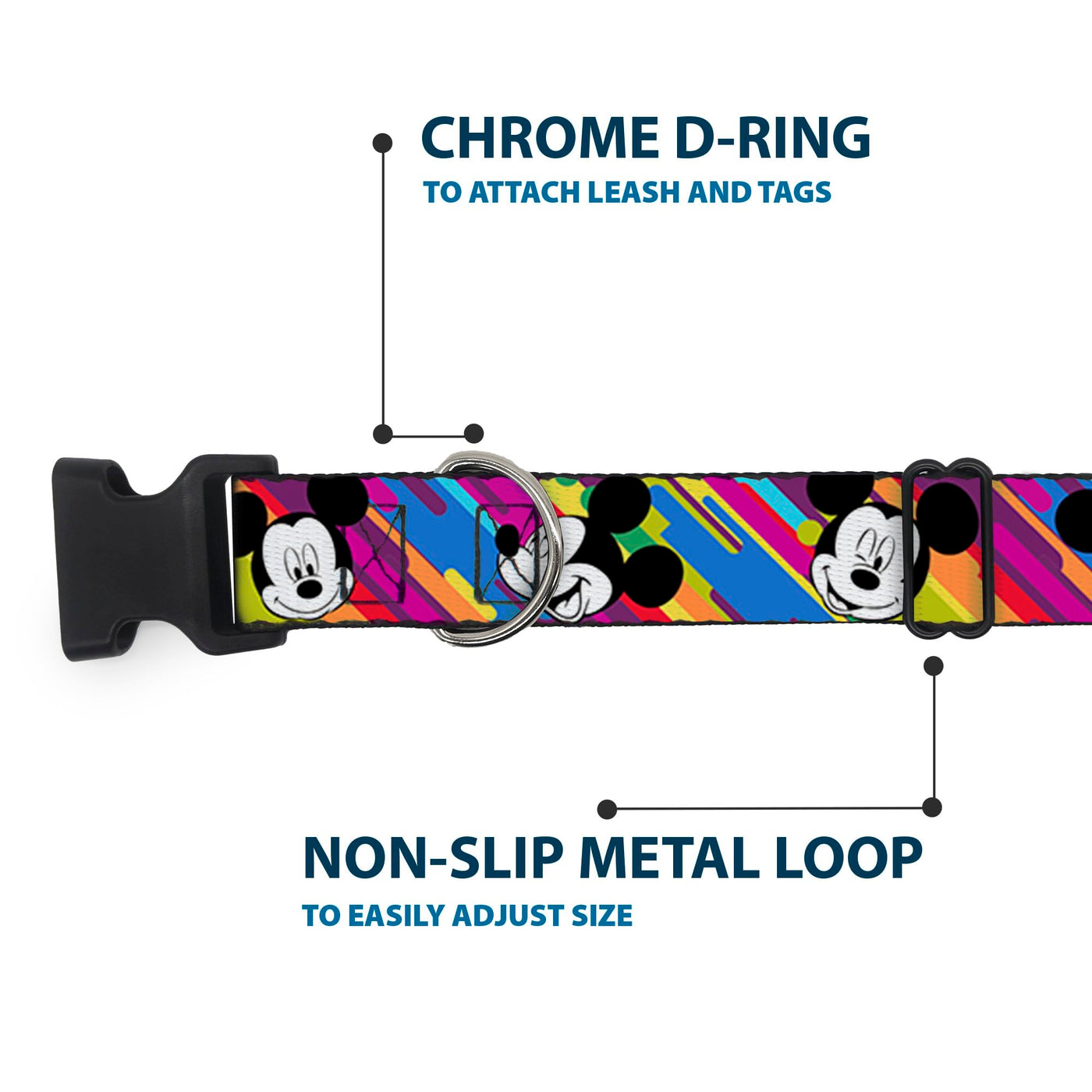 Buckle-Down Plastic Clip Collar - Mickey Mouse Expressions Multi Color White/Black - 1'' Wide - Fits 15-26'' Neck - Large