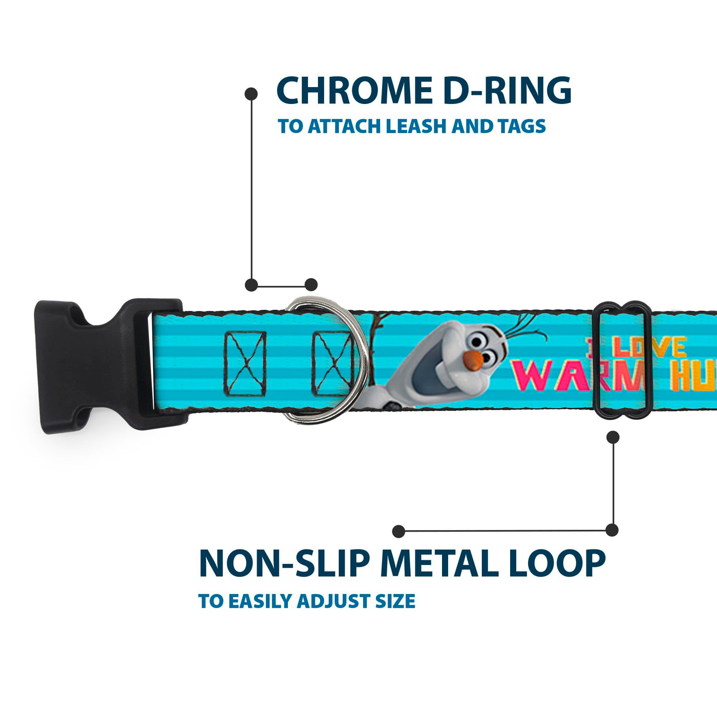 Buckle-Down Plastic Clip Collar - Olaf Pose I Love Warm Hugs Stripe Blues - 1'' Wide - Fits 15-26'' Neck - Large