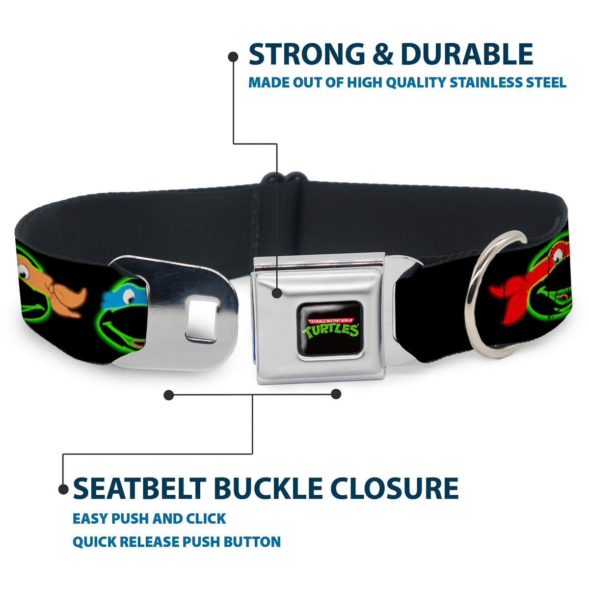Buckle-Down Seatbelt Buckle Dog Collar - Classic Tmnt Electric Expressions Black/Multi Neon - 1.5'' Wide - Fits 13-18'' Neck - S