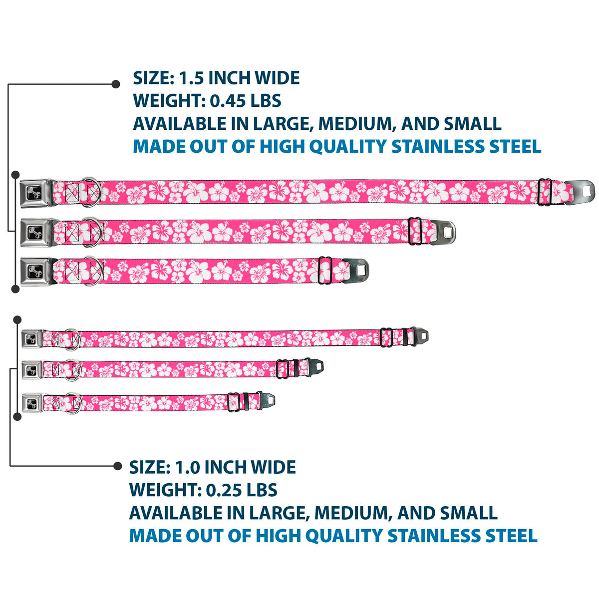 Buckle-Down Seatbelt Buckle Dog Collar - Hibiscus Neon Pink/White - 1'' Wide - Fits 15-26'' Neck - Large (Dc-W30853-L)