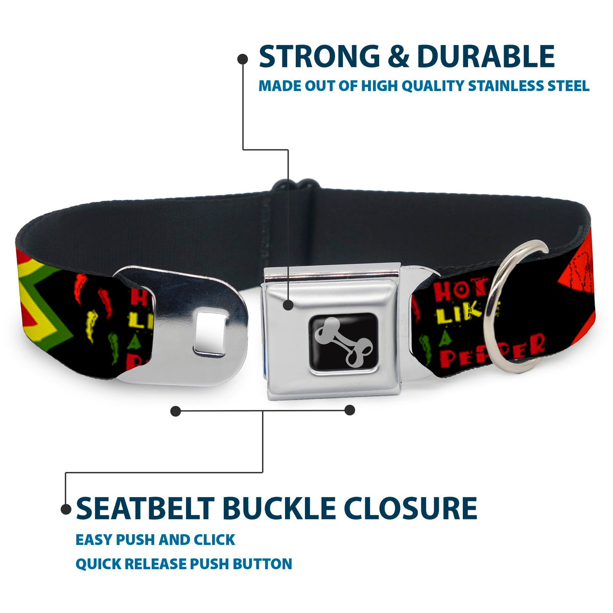 Buckle-Down Seatbelt Buckle Dog Collar - Hot Like A Pepper - 1'' Wide - Fits 11-17'' Neck - Medium
