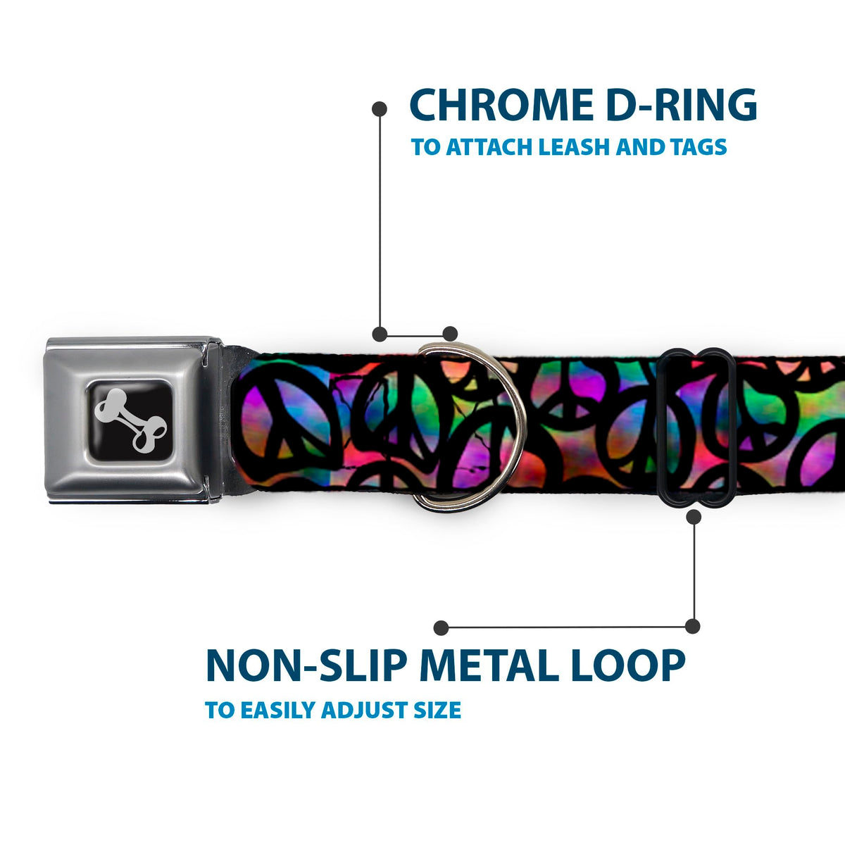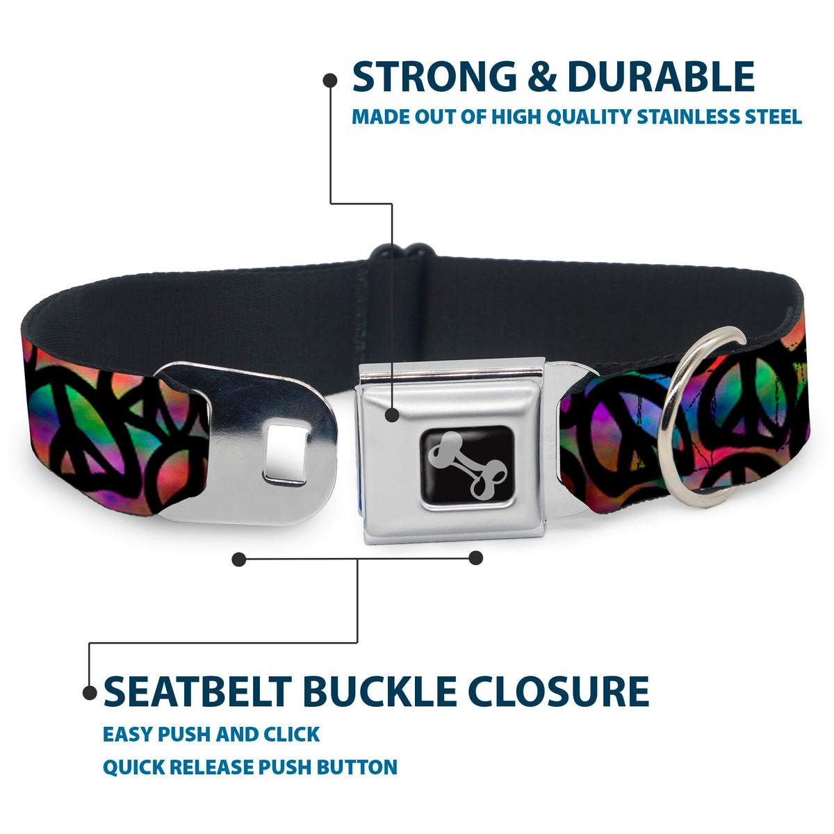 Buckle-Down Seatbelt Buckle Dog Collar - Peace Psychedelic - 1'' Wide - Fits 11-17'' Neck - Medium