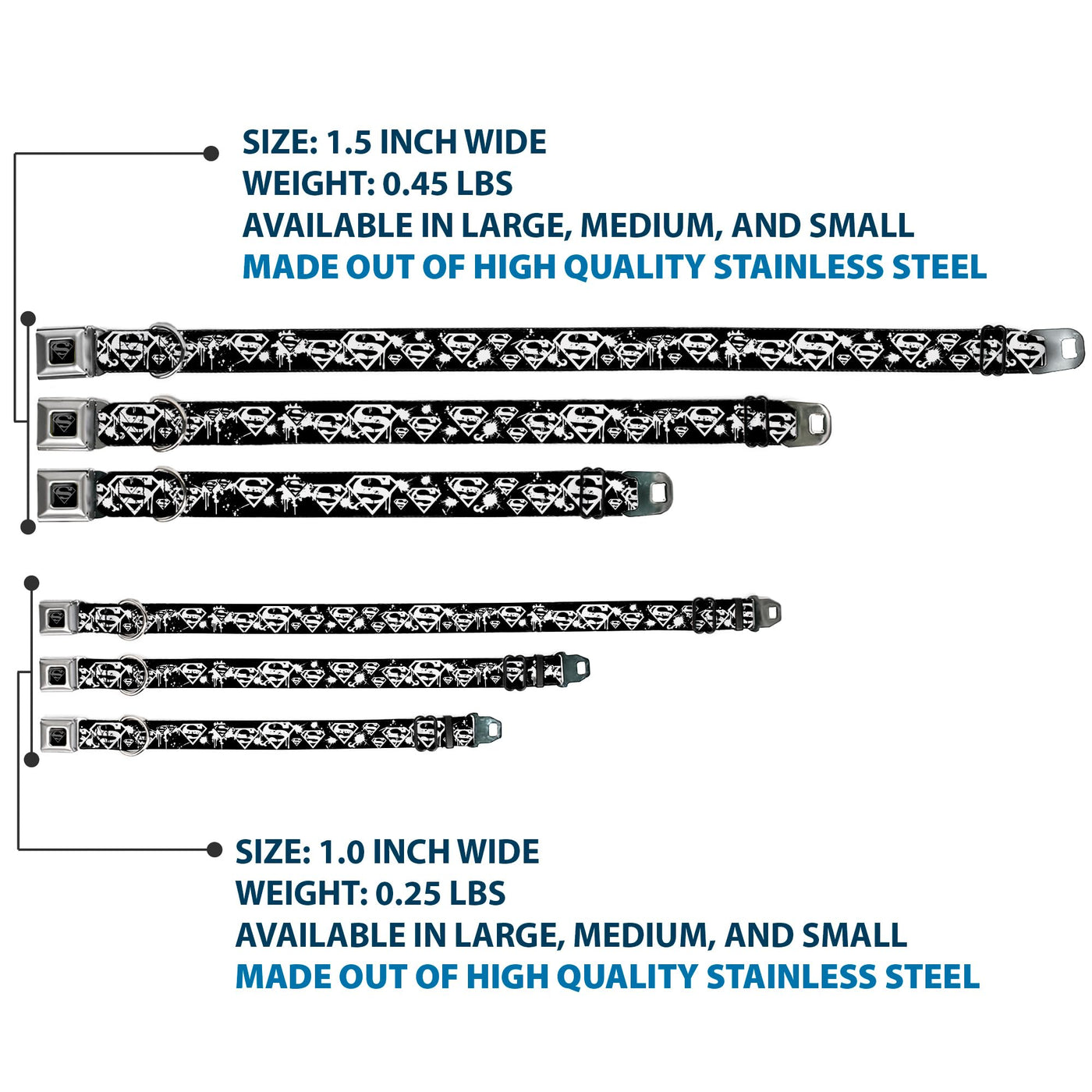 Buckle-Down Seatbelt Buckle Dog Collar - Superman Shield Splatter Black/White - 1 Wide - Fits 15-26 Neck - Large