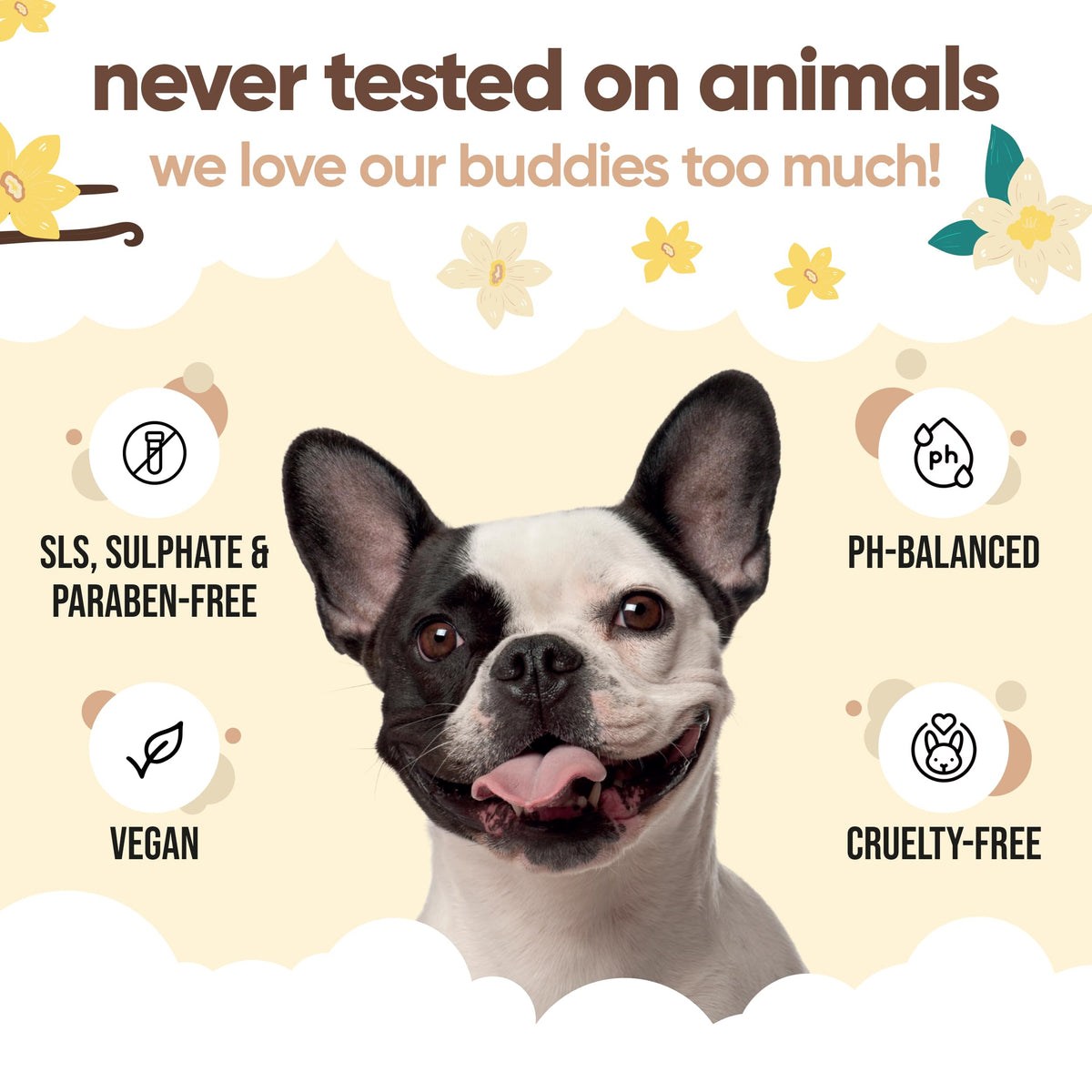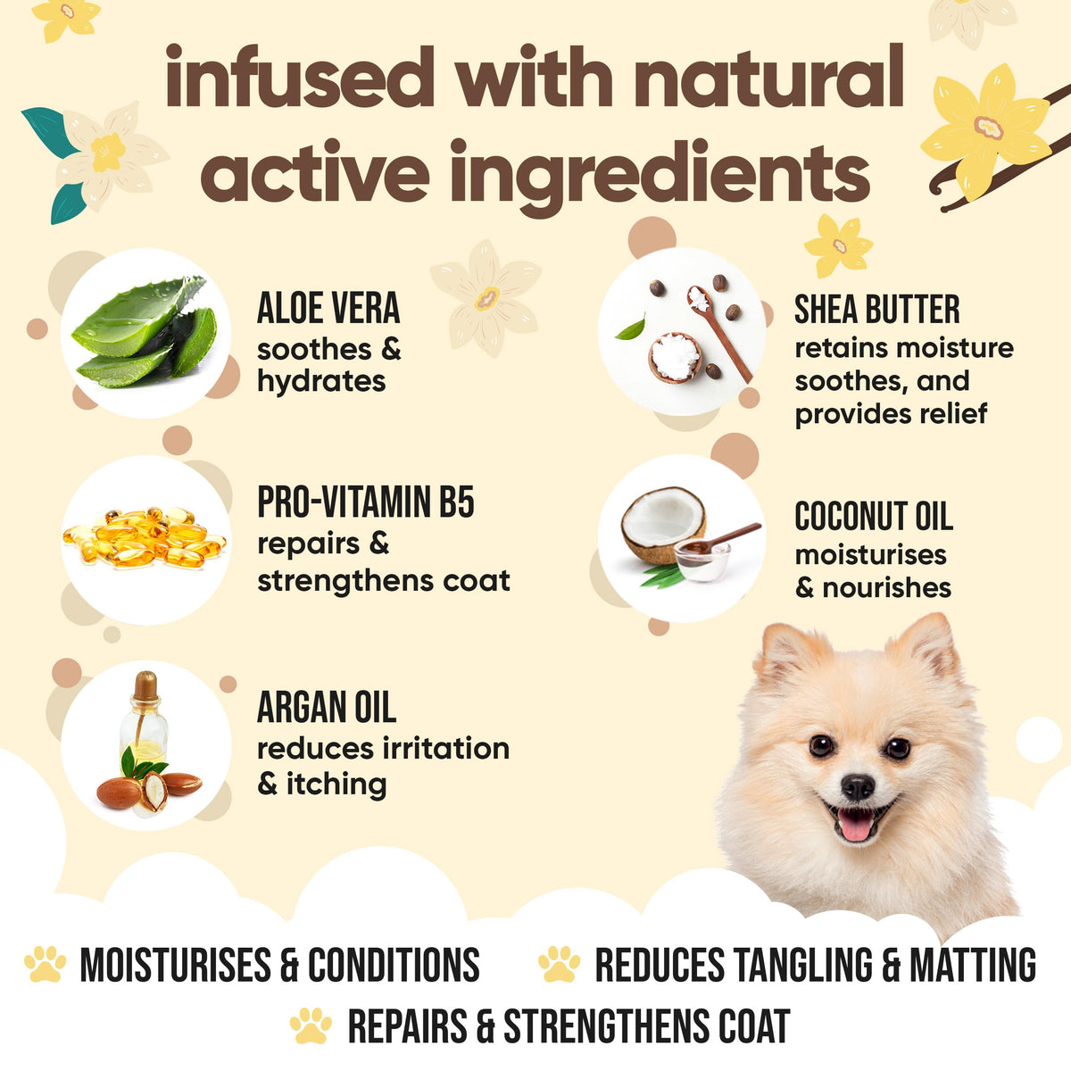 Pamper your pooch with Buddycares exquisite range of dog conditioners, meticulously crafted to nourish, soften, and rejuvenate your dogs coat. In this exclusive collection, each scent is a unique blend of nature and luxury, designed to cater to the discerning tastes of dog owners. Each Buddycare Dog Conditioner is formulated with the highest quality ingredients, ensuring a gentle yet effective conditioning experience. Free from harsh chemicals, these conditioners are suitable for dogs of all breeds and coat types. Transform your dogs grooming routine into a luxurious, spa-like experience with Buddycare - where every bath is an opportunity to bond and delight in the beauty of your beloved pet. Indulge in the luxurious blend of warm vanilla and rich shea butter. This opulent scent is coupled with a deeply hydrating formula, providing an intense moisture treatment that leaves your dogs coat gleaming and irresistibly soft to the touch.