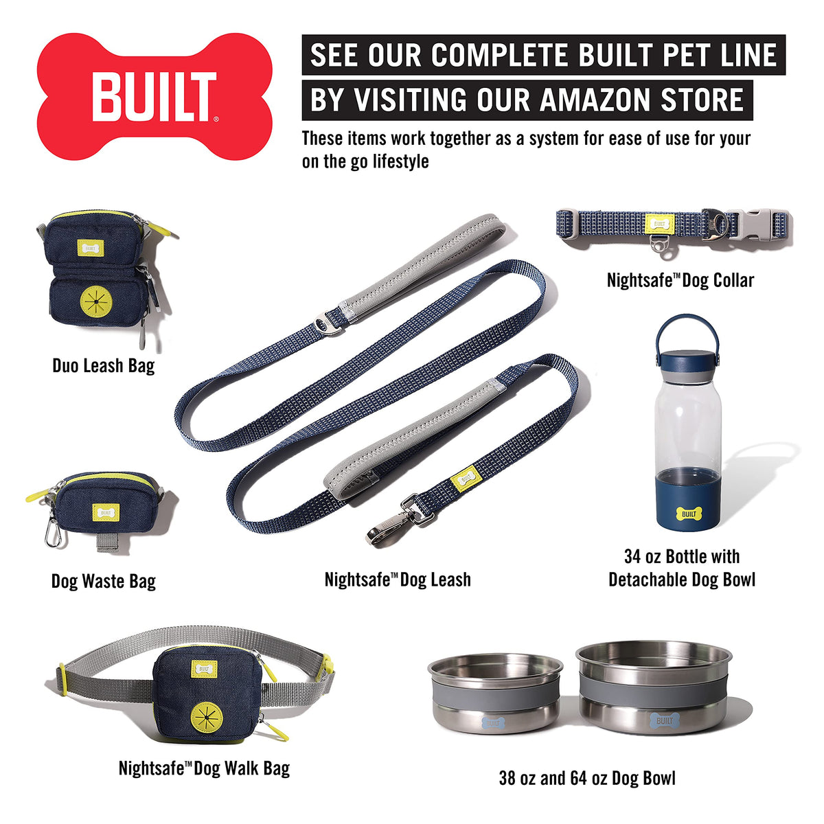 This BUILT Nightsafe Dog Collar can help keep your dog safe. Made with Nightsafe properietary reflective webbing, you and your dog will be highly visible from a distance at night and early in the morning. No need for batteries or chargers. Designed with your dog's comfort in mind, this sturdy and durable dog collar is available in three sizes and is fully adjustable with convenient quick-release buckle. Includes strong metal ring which pairs perfectly with our dog leash. Additional sturdy ring to attach dog identification tag. This user friendly dog collar does everything it's supposed to do and will last a long time. It offers excellent visibility, provides safety, and is comfortable for your dog.