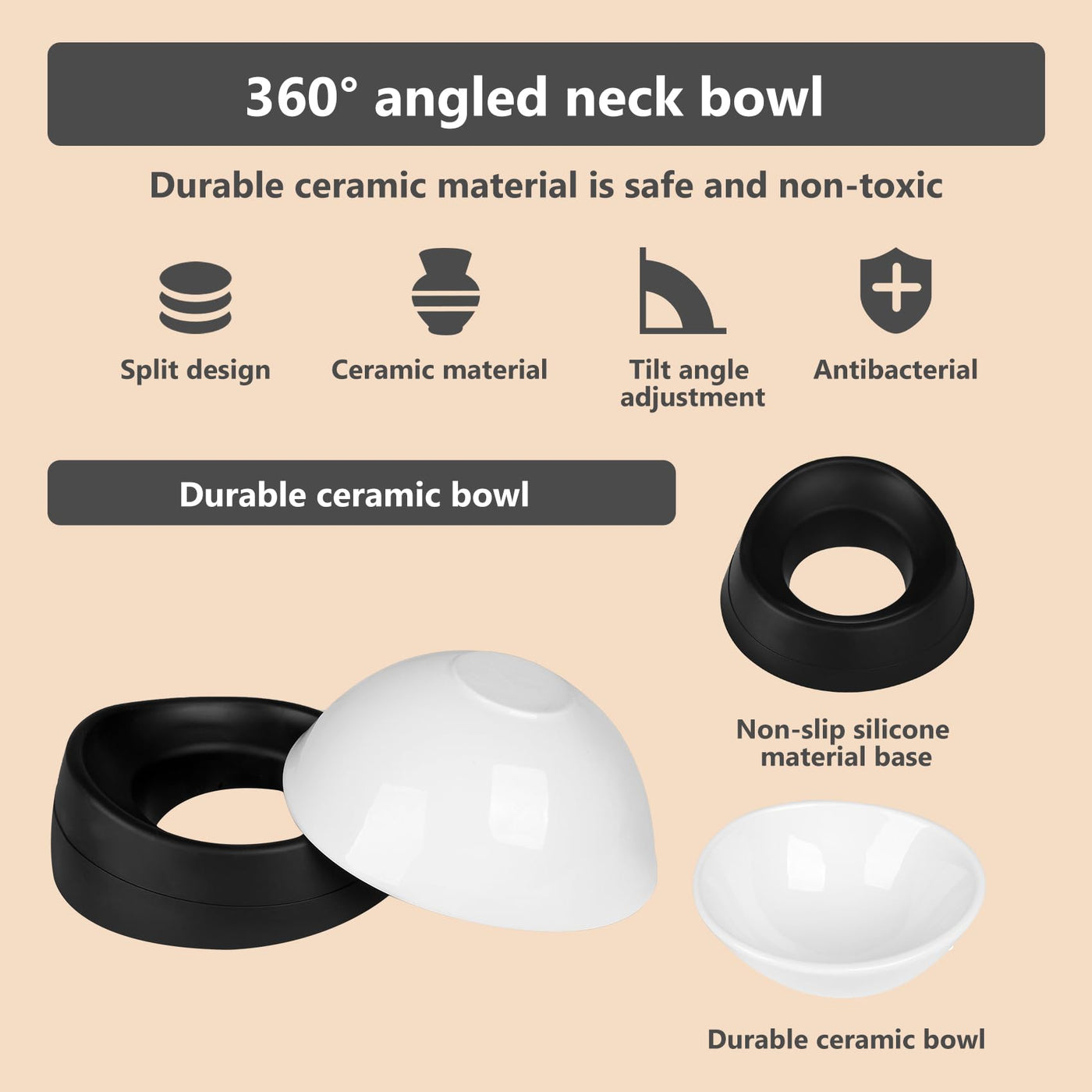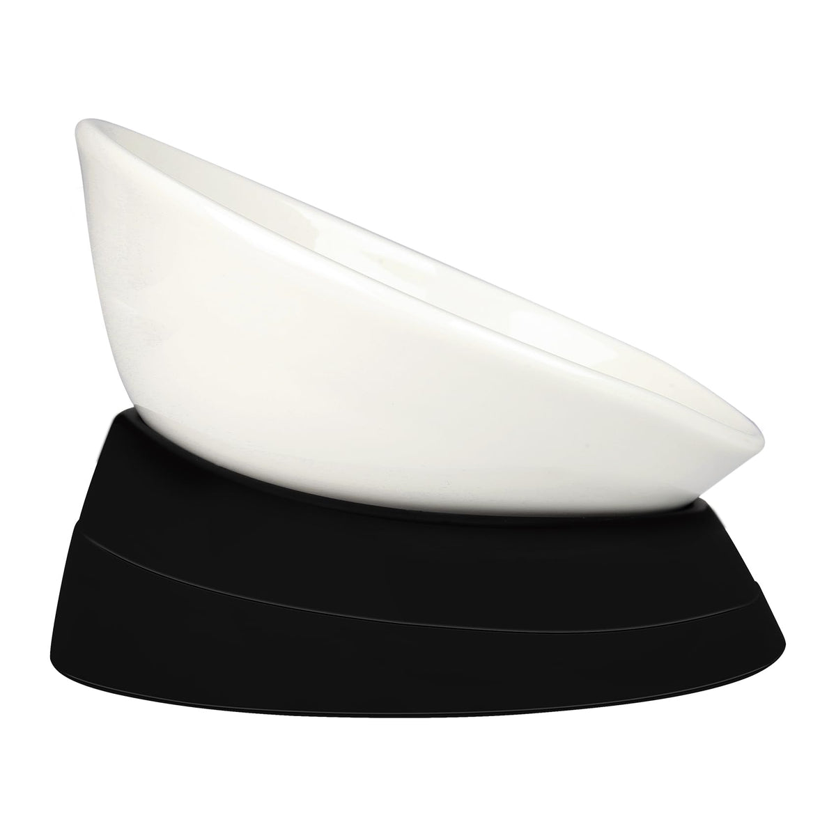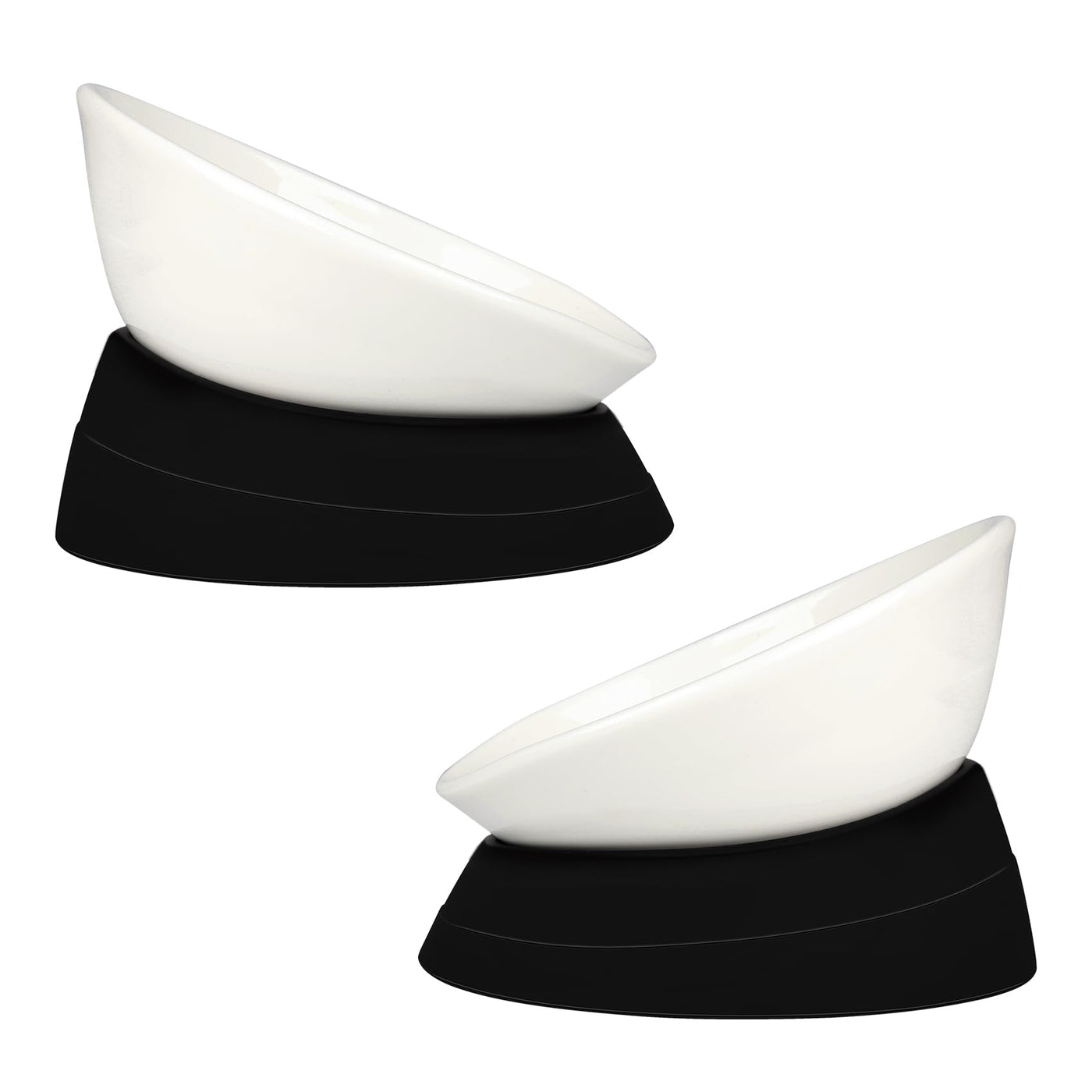 Bulldog Bowl Anti-Slip Dog Cat Dish Detachable Rubber Dog Bowl Pet Sterile Tilted Pet Feeder Slope Base (Black(White Ceramic Bow