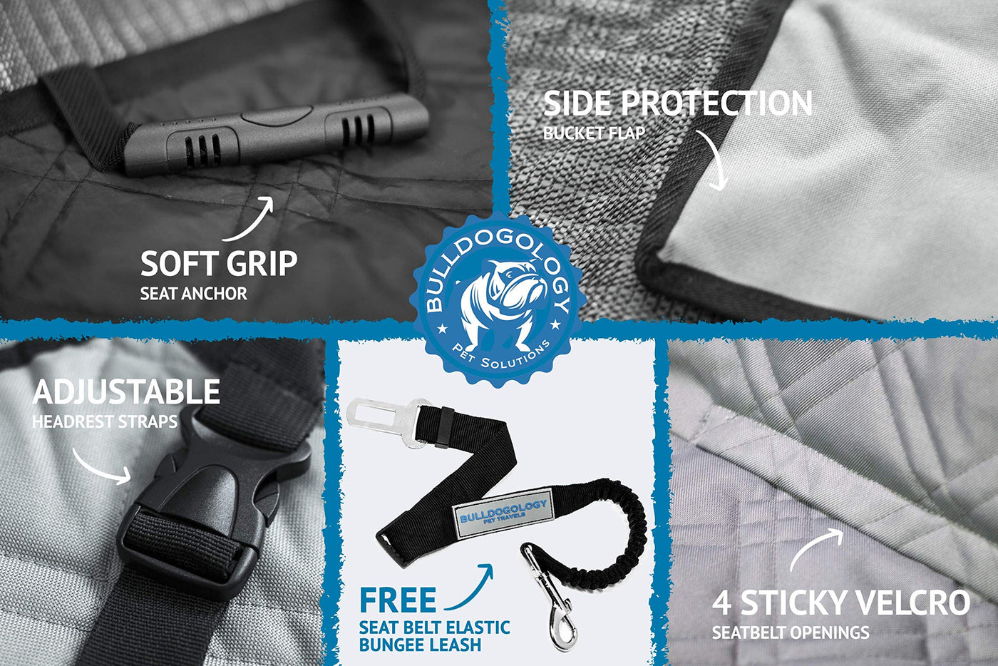 Keep Your Car Clean And Your Dog Happy With Bulldogology Premium Dog Seat Covers For Cars! From Trips To The Park To Checkups At The Vet, Your Dog Is Your Most Loyal Travel Companion. But With Dirty Paws, Shedding Hair And Sharp Claws, Your Furry Friend Can Take A Toll On Your Cars Interior - Not To Mention The Stains And Odors Left By Bathroom Accidents. Bulldogology Pet Solutions Introduces Our Car Seat Covers, Specially Designed To Stand Up Against Even The Most Rambunctious Dogs!