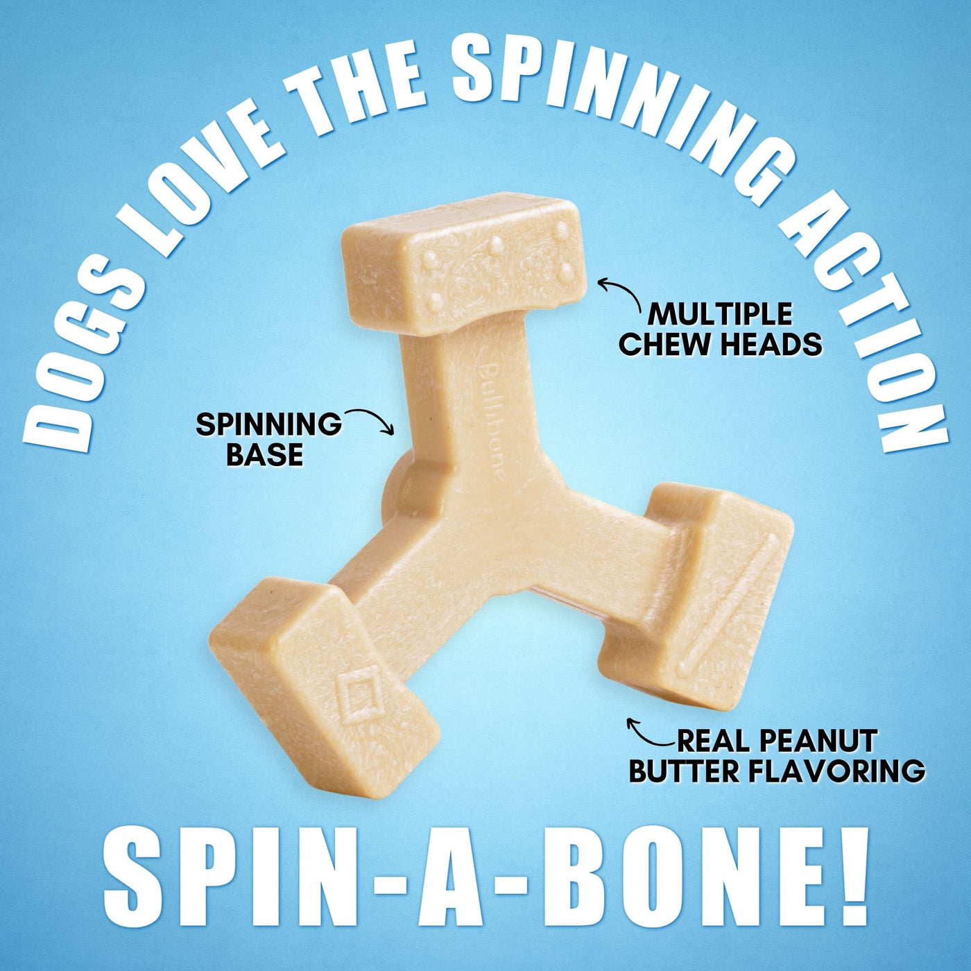 Our flavored Spin-a-Bone nylon dog chew is designed to bring out your dogs natural hunting chasing and playing instincts. Its an interactive spinning toy that allows you to engage in play with your dog and is fully chewable once they catch it.
