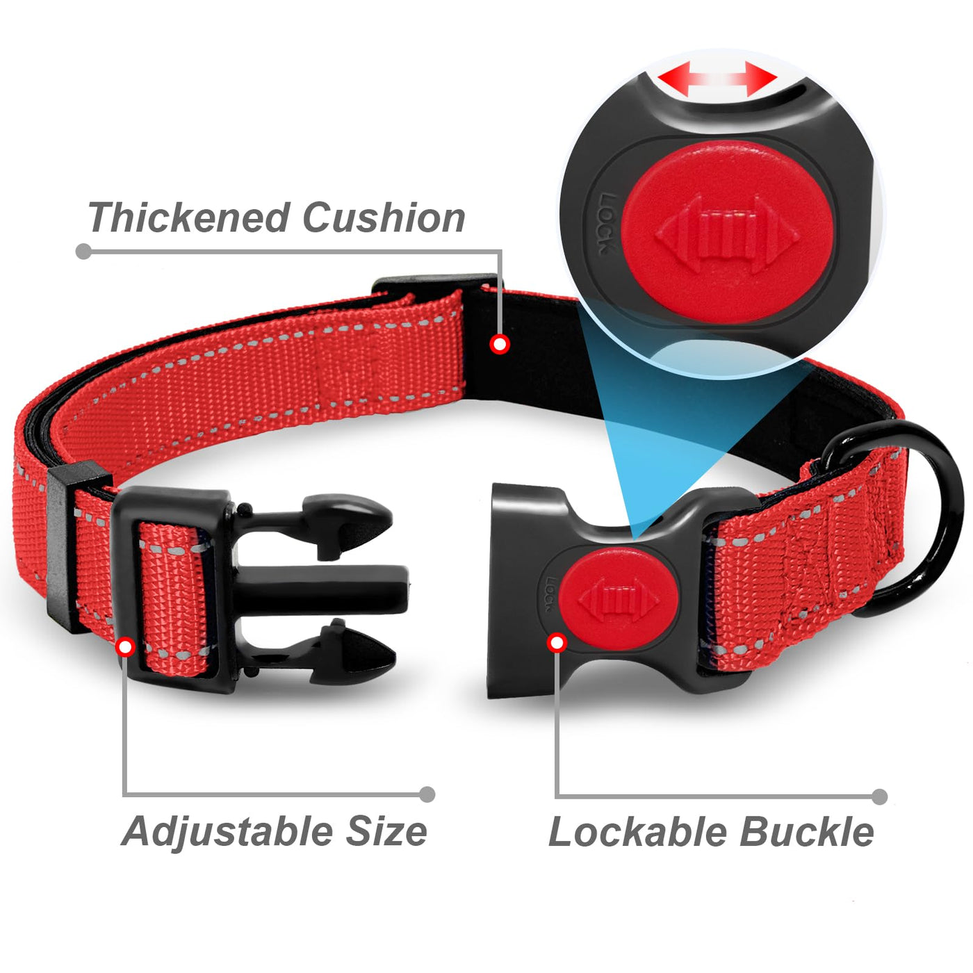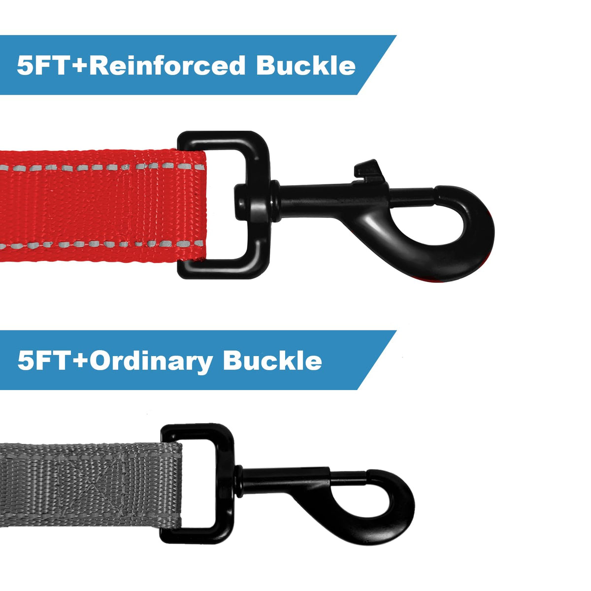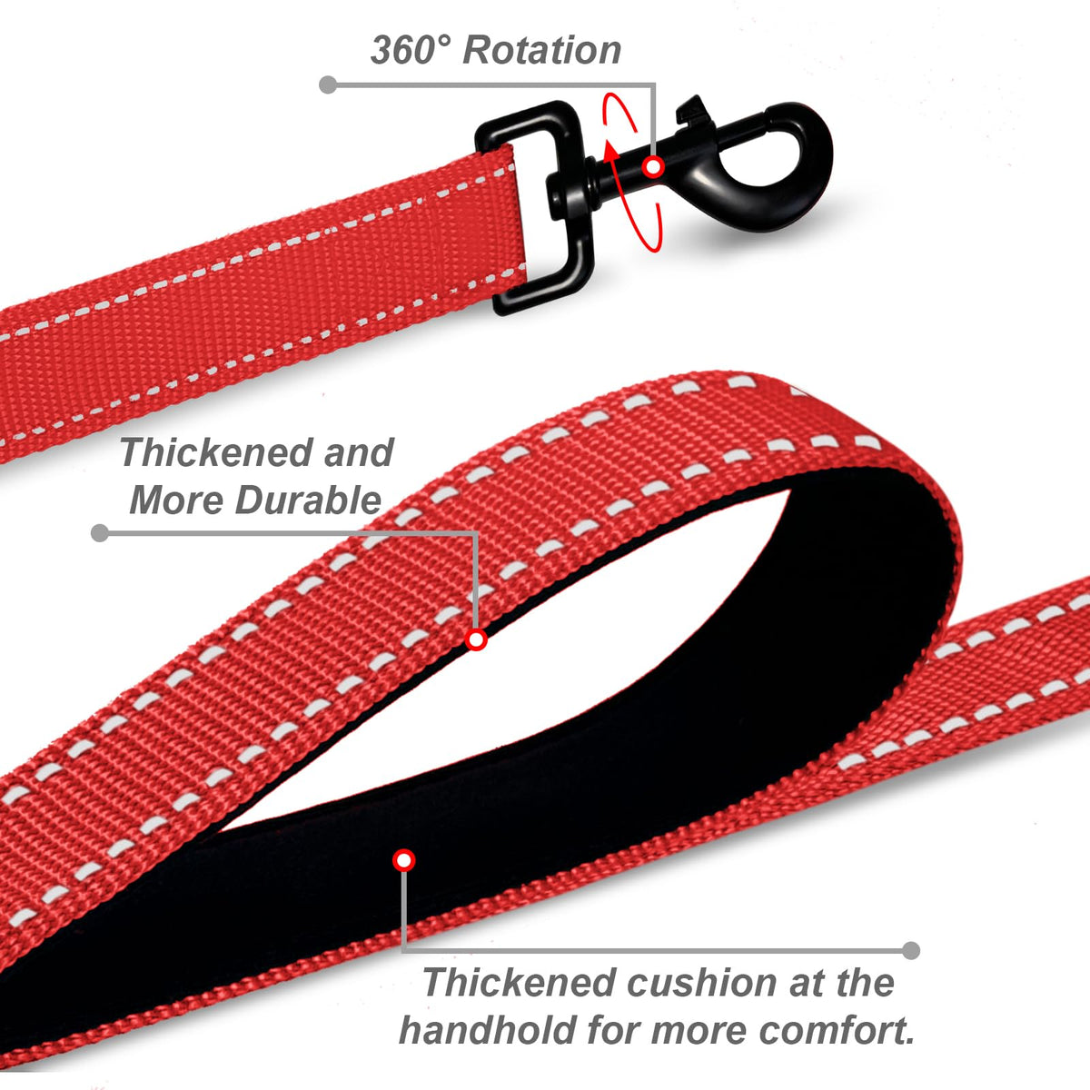 Bully Dog Leash 5Ft With Comfortable Padded Handle, Highly Reflective Threads, Adjustable, Red, Large