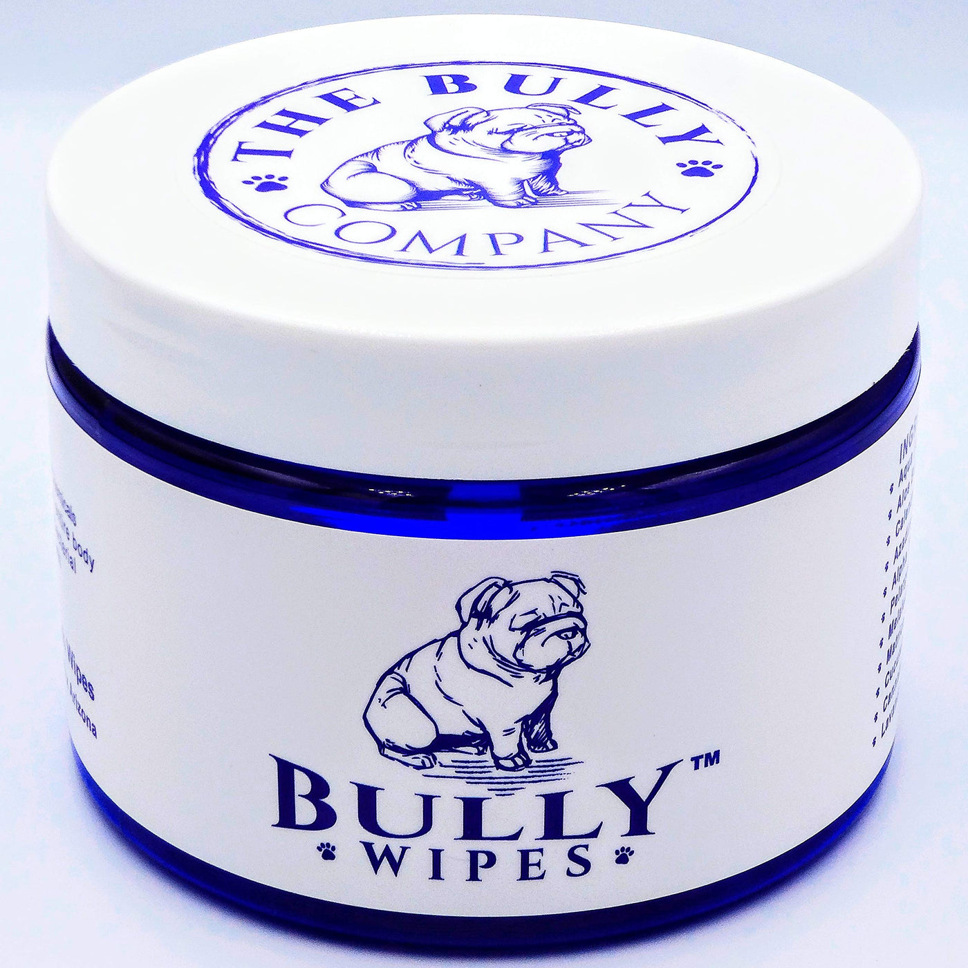 All Natural Organic Formula - Naturally removes harmful Dirt build up - Without the use of harsh chemicals so you can feel good about using them anywhere on the body especially the face and wrinkles Handmade in Small Batches - We worked alongside Ayurvedic health professionals and researches to carefully choose the best and safest ingredients We left out all the nonsense The Original #1 Bulldog Wipes - Safe to Use Anywhere on your Bulldog - Bully Wipes were specifically created for Bulldog Wrinkles One of the reasons our wipes are the best on the market is they are safe to use daily around the Eyes Ears Paws and Skin Folds Tailored for your Bulldog - As Bulldog owners we were mindful of their specific needs to clean those loveable wrinkles removes dirt while also moisturizing replenishing and maintaining a healthy coat and skin barrier 50 Large 3 Inch Textured Round Wipes - Delightfully Natural Scent and Appearance - Discoloration of yellow and green colors is normal these are the essential oil colors - When a product is stark white that usually means it has been bleached or dyes have been used our wipes are free from all chemicals or dyes Bully Wipes have a light and refreshing Botanical scent that will keep your Bully clean Healthy and Happy