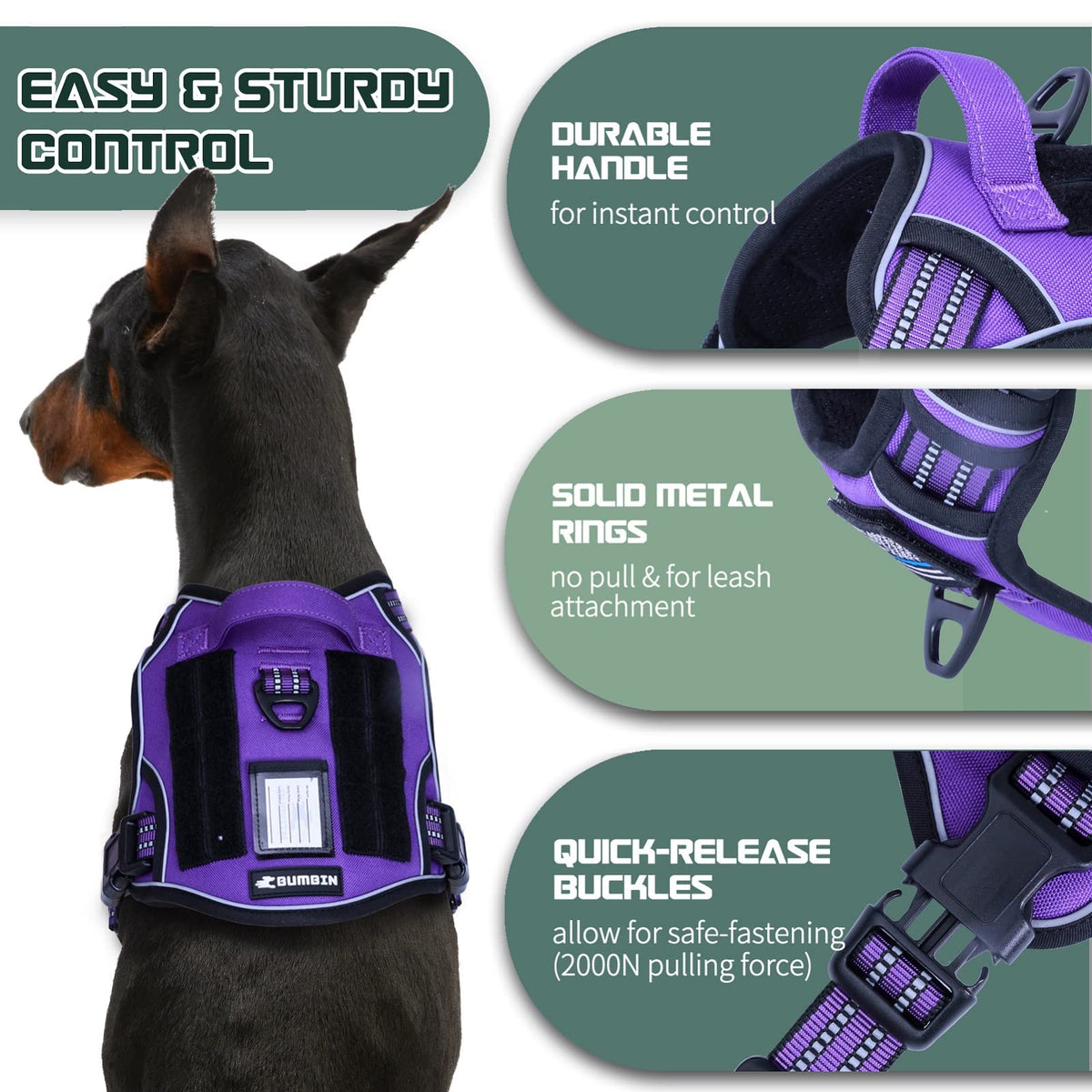 BUMBIN Tactical Dog Harness for Large Dogs No Pull, Famous TIK Tok No Pull Puppy Harness, Fit Smart Reflective Pet Walking Harne