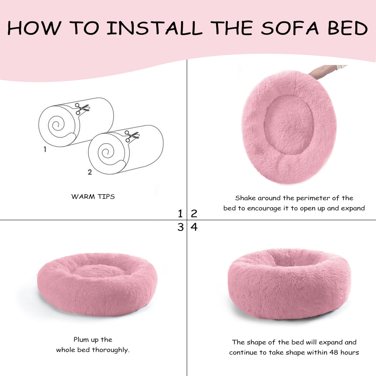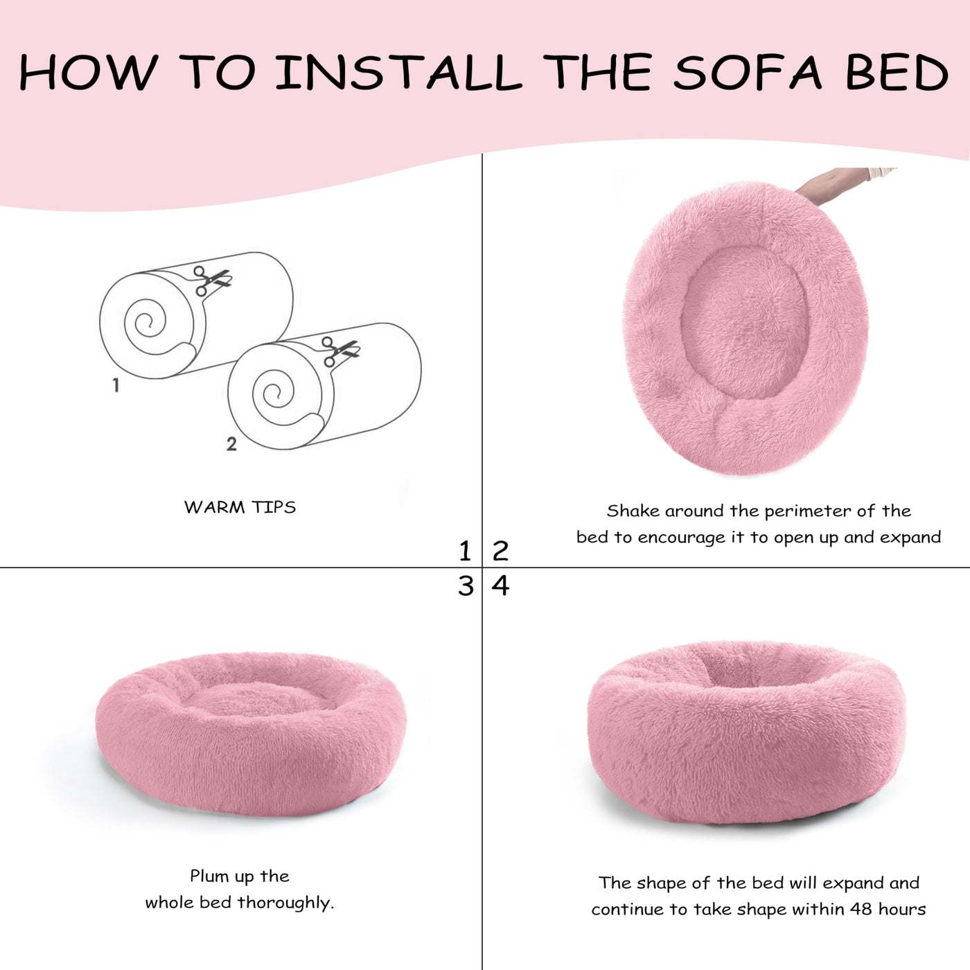Bunlitent 20'' Inch Calming Dog Bed, Anti-Anxiety Donut Small Dog Bed, Warming Cozy Soft Cute Round Washable, Marshmallow Cuddle