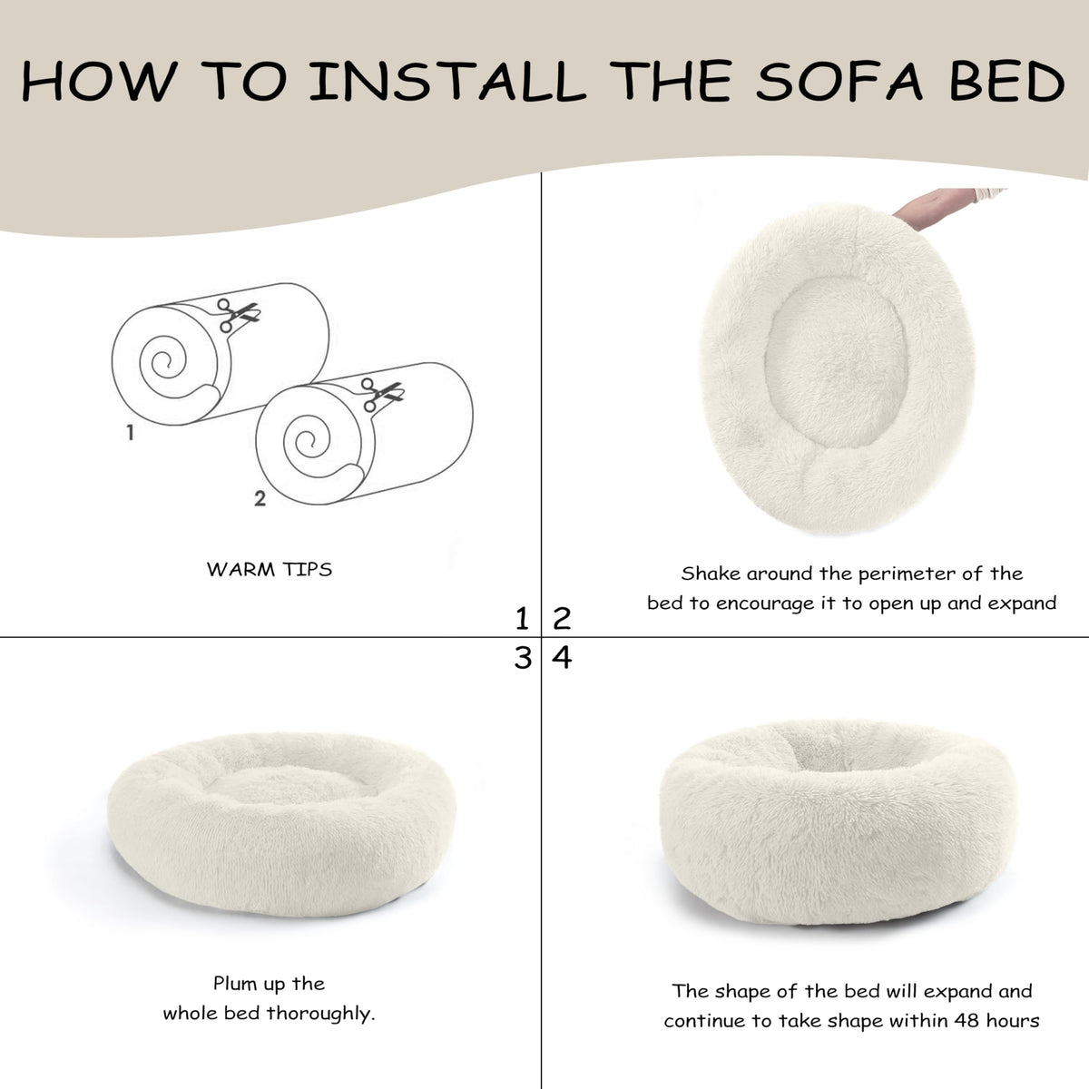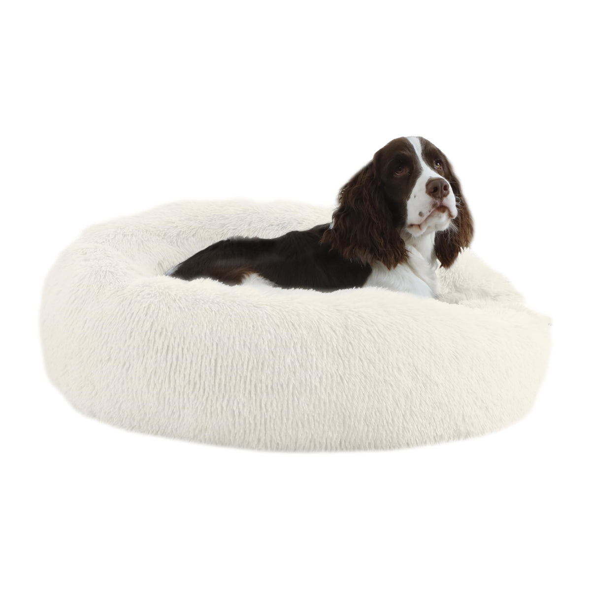Bunlitent 30'' Inch Calming Dog Bed, Anti-Anxiety Donut Small Medium Dog Bed, Warming Cozy Soft Cute Round Washable, Marshmallow