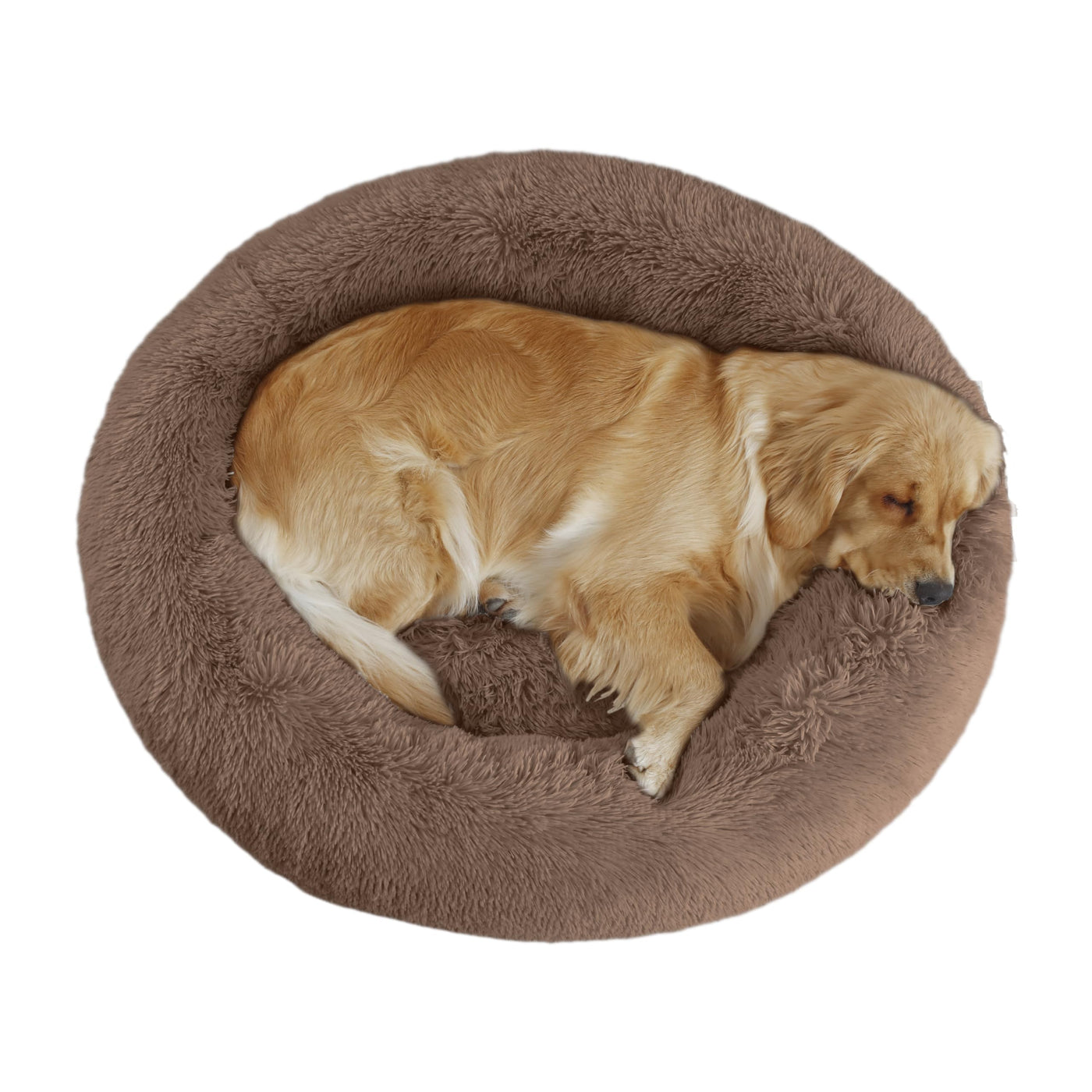 Bunlitent 39'' Inch Calming Dog Bed, Plush Anti-Anxiety Donut Dog Bed For Medium Large Dogs, Warming Cozy Soft Cute Round Washab