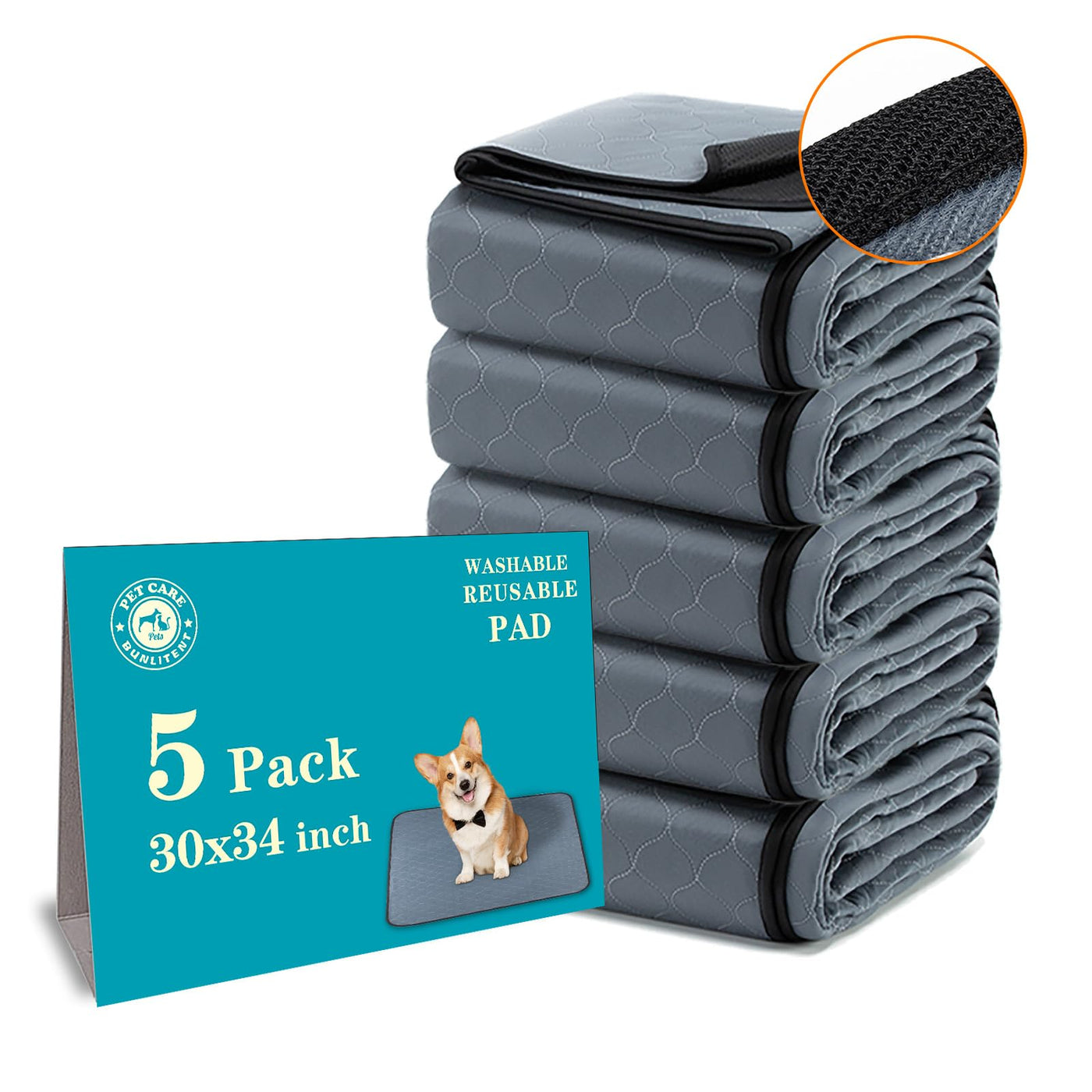 Bunlitent Washable Puppy Pads, 5 Pack, 30X34 - Reusable Dog & Cat Pee Pads With Quick Dry & Anti-Slip Technology