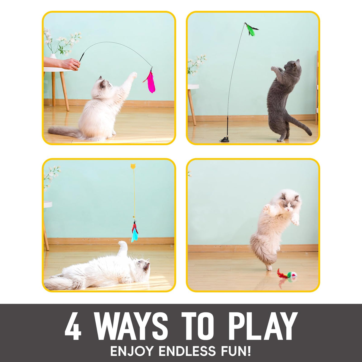 Burchlife 4-In-1 Interactive Cat Toys Set - Feather, String, Stick & Wand Toys With 15 Replaceable Attachments For Indoor Cats (