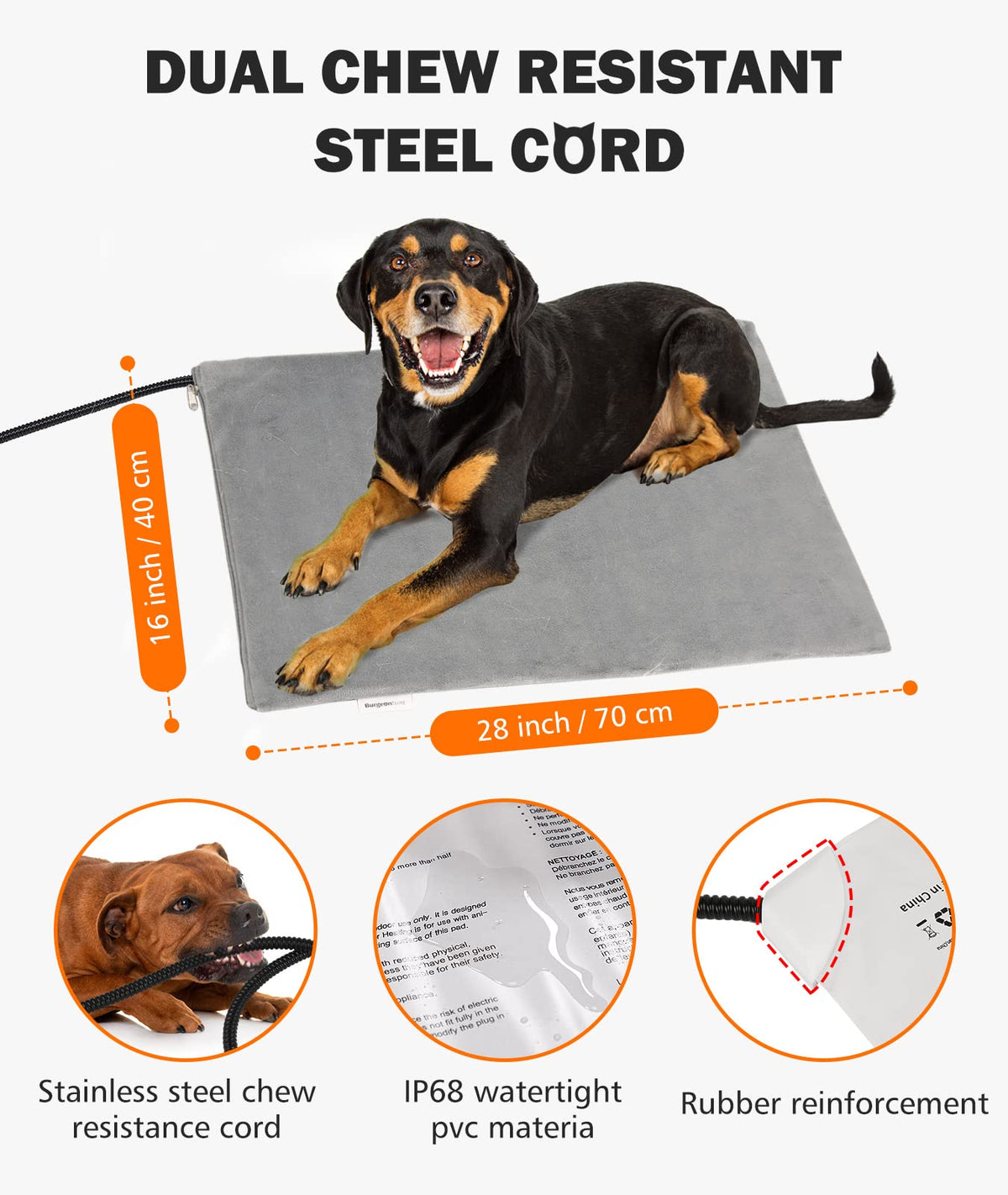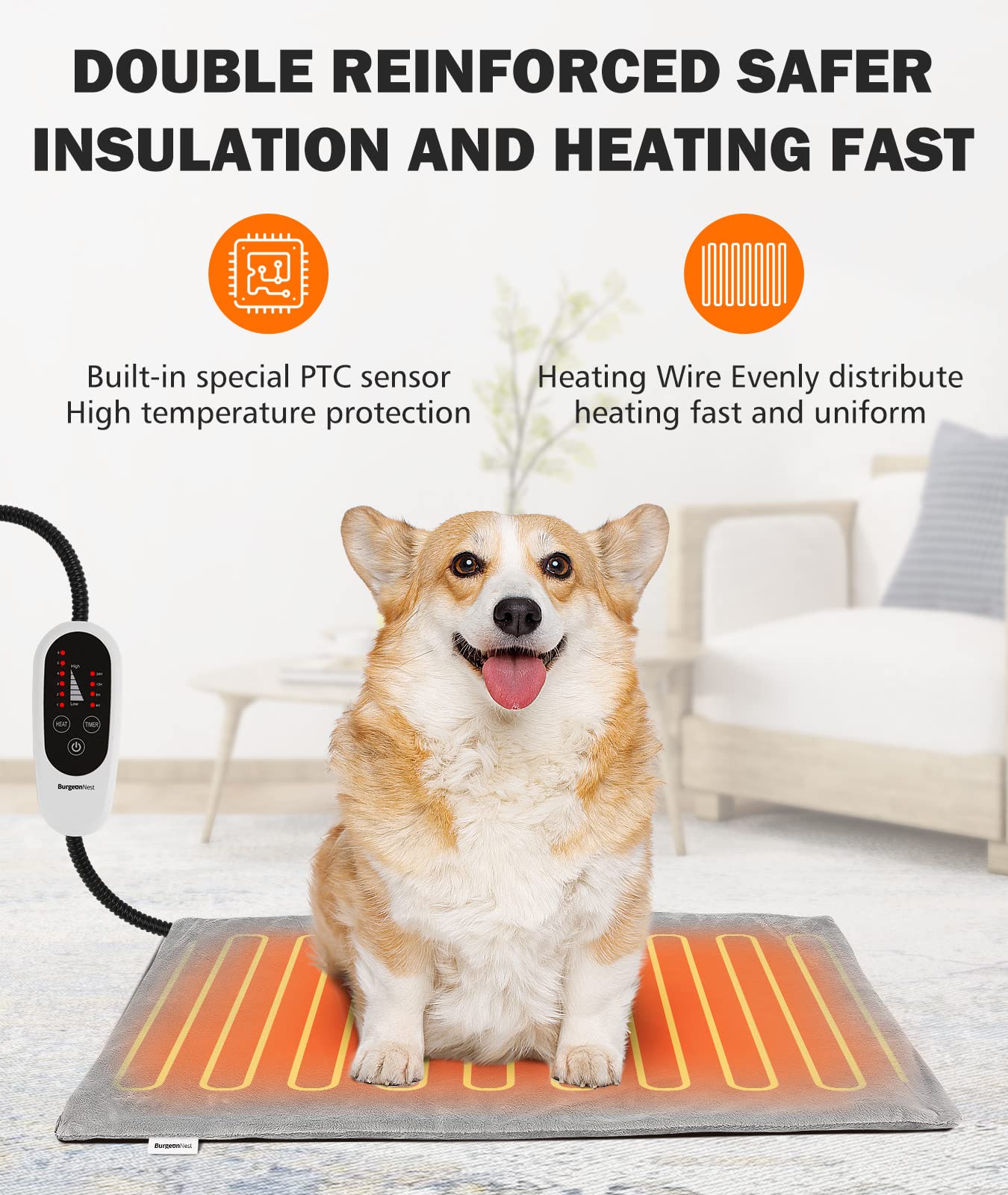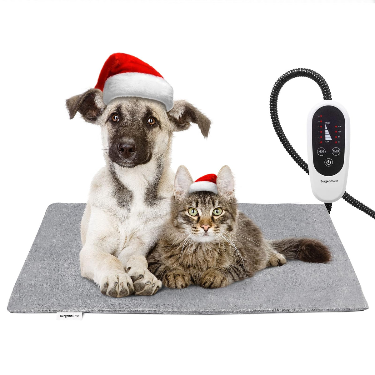 Burgeonnest Heated Cat Bed, Pet Heating Pad With Timer, 28' X 16' / 18' X 16' Upgraded Electric Heated Dog Bed With Temperature Adjustable Heated Pet Mat Warmer Blanket Auto Power-Off