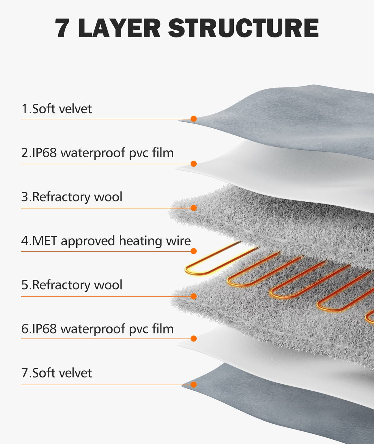 7 layer Protection Structure: This cat warming bed is made of soft velvet cover watertight film refractory wool and alloy heating wire total 7 layer protection structure will offer your pet gentle warming comfort.