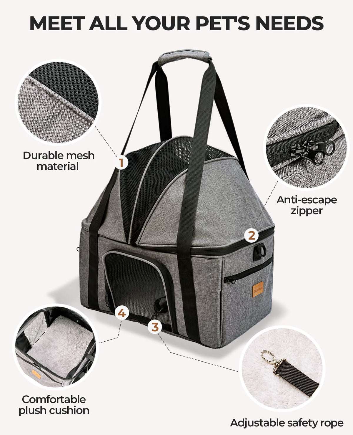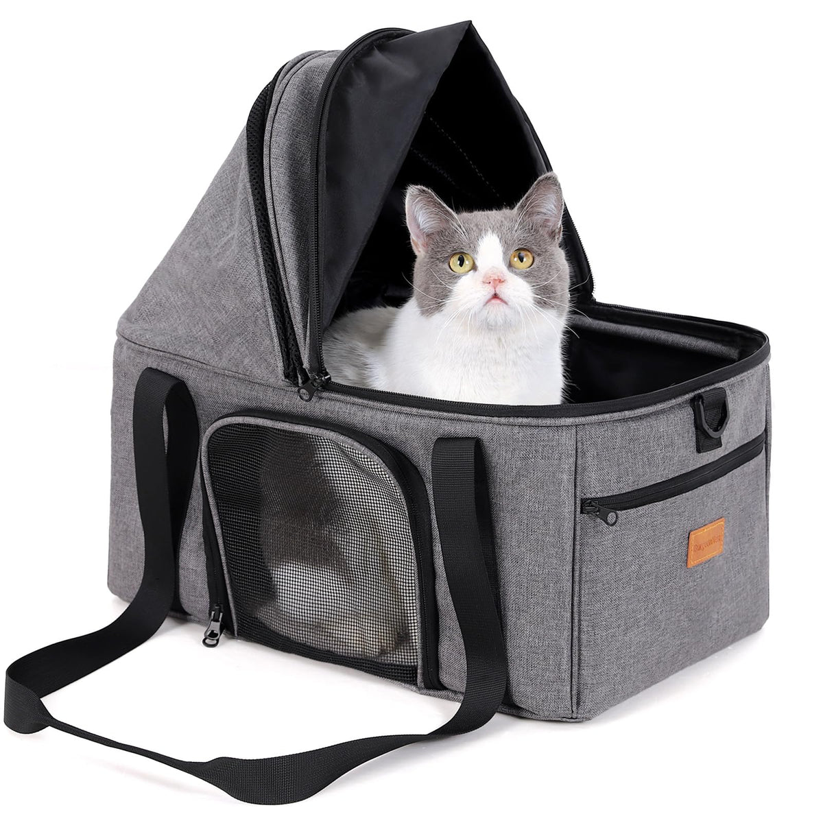 Burgeonnest Top-Expandable Large Cat Carrier, Soft Sided Cat Bag Carrier For Medium Large Cat 15 Lbs, Upgrade Small Dog Car Seat