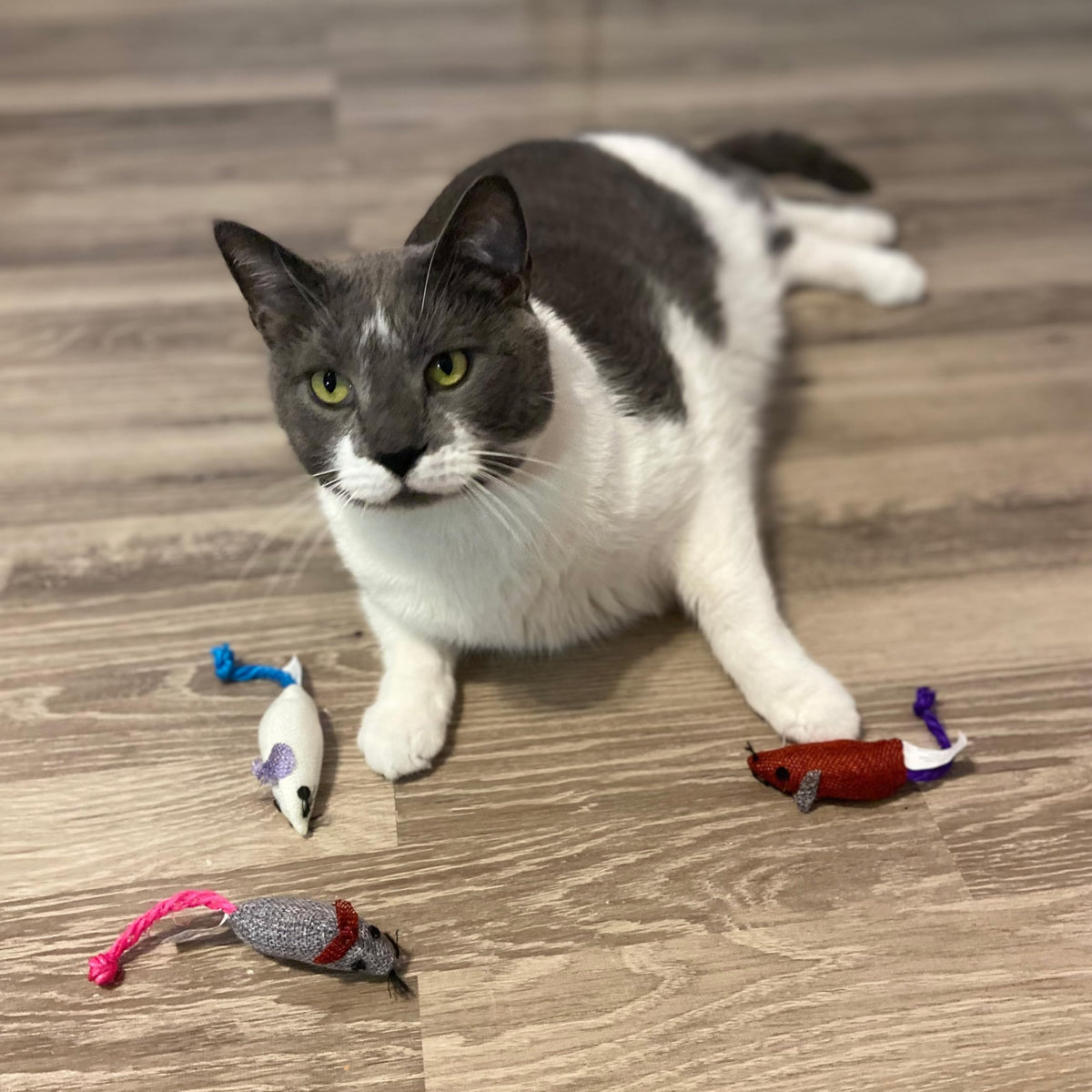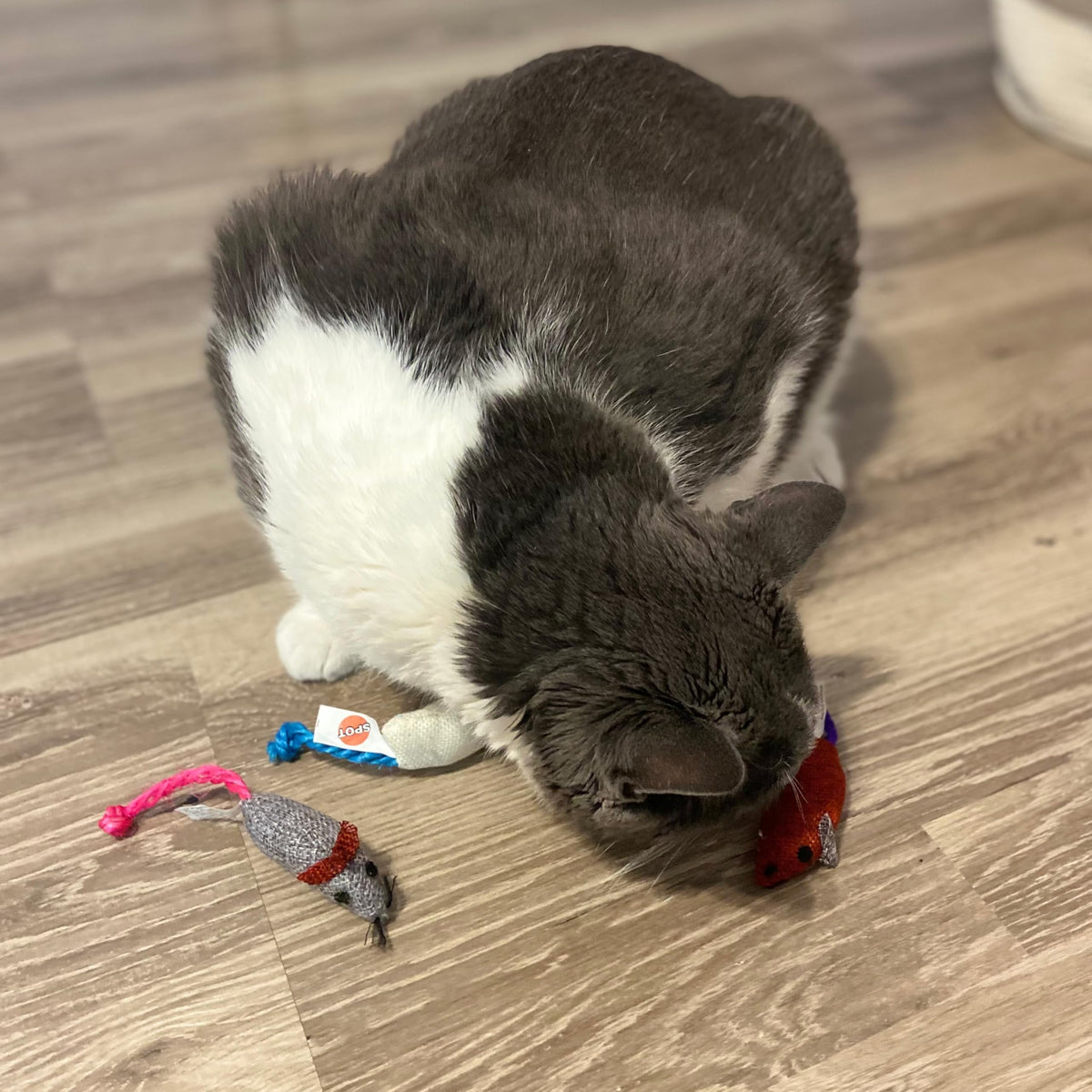 2090 Features: -Cat toy. -Available in assorted colors and are filled with catnip for extra fun. Product Type: -Mice. Catnip: -Yes. Primary Color: -Blacks & Grays. Pet Category: -Cats. Generic Dimensions: -1.25'' H x 5.5'' W x 4.75'' D. Dimensions: Overall Height - Top to Bottom: -1.25 Inches. Overall Width - Side to Side: -5.5 Inches. Overall Depth - Front to Back: -4.75 Inches. Overall Product Weight: -0.1 Pounds.