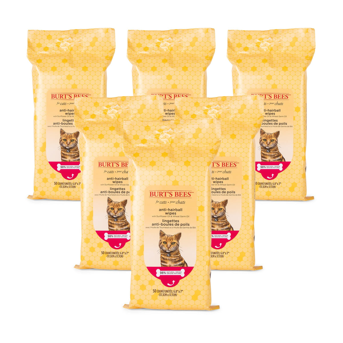 Burts Bees for Pets Anti-Hairball Wipes for Cats with Sunflower Oil and Wheat Germ Oil, 98% Natural Origin Formulas, Cat Hairba