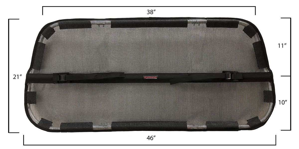 We designed this product with our customers and pets in mind. Our number one goal was to keep you, your pet and car safe, secure, clean and protected. This rugged barrier keeps your pet in the cargo area of your SUV. It is made of a durable pet screen that is secured by metal piping that is attached in a way that keeps everything firmly in place. This product is built with strict guidelines to make it virtually indestructible from your active energetic pet. Whether big or small this wonderful barrier keeps your precious cargo happy and feeling secure and protected. Dimensions: 46' width x 21' height. Refer to last image for detailed dimensions.