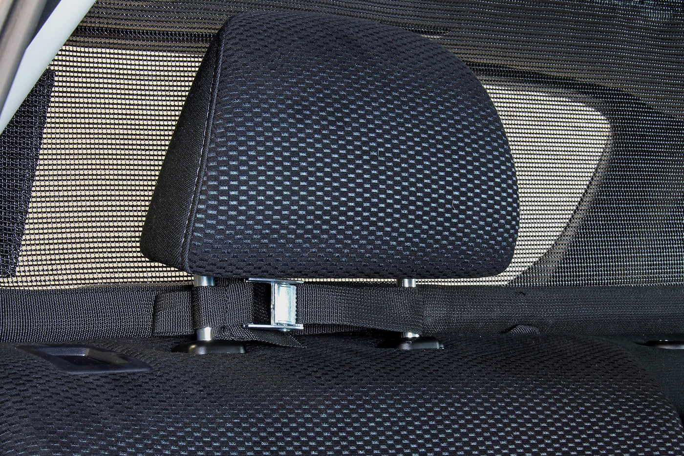 Q: How do I install the dog barrier in my vehicle?A: Installation is quick and easy; simply attach the barrier to the backseat headrests and secure it to baby car seat brackets, tie-down points, or the seat frame without the need for any tools.